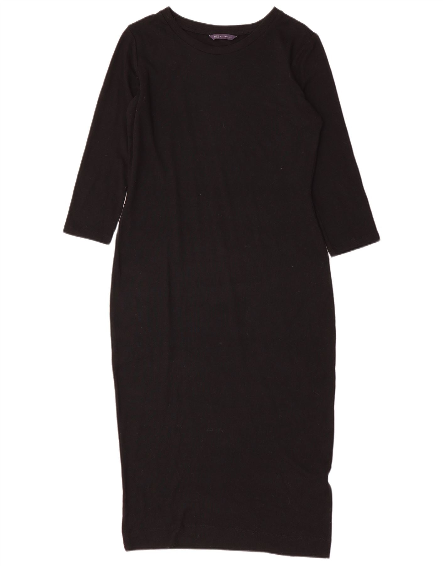 Vestido feminino MARKS & SPENCER com bainha de manga 3/4 Reino Unido 10 pequeno poliéster preto