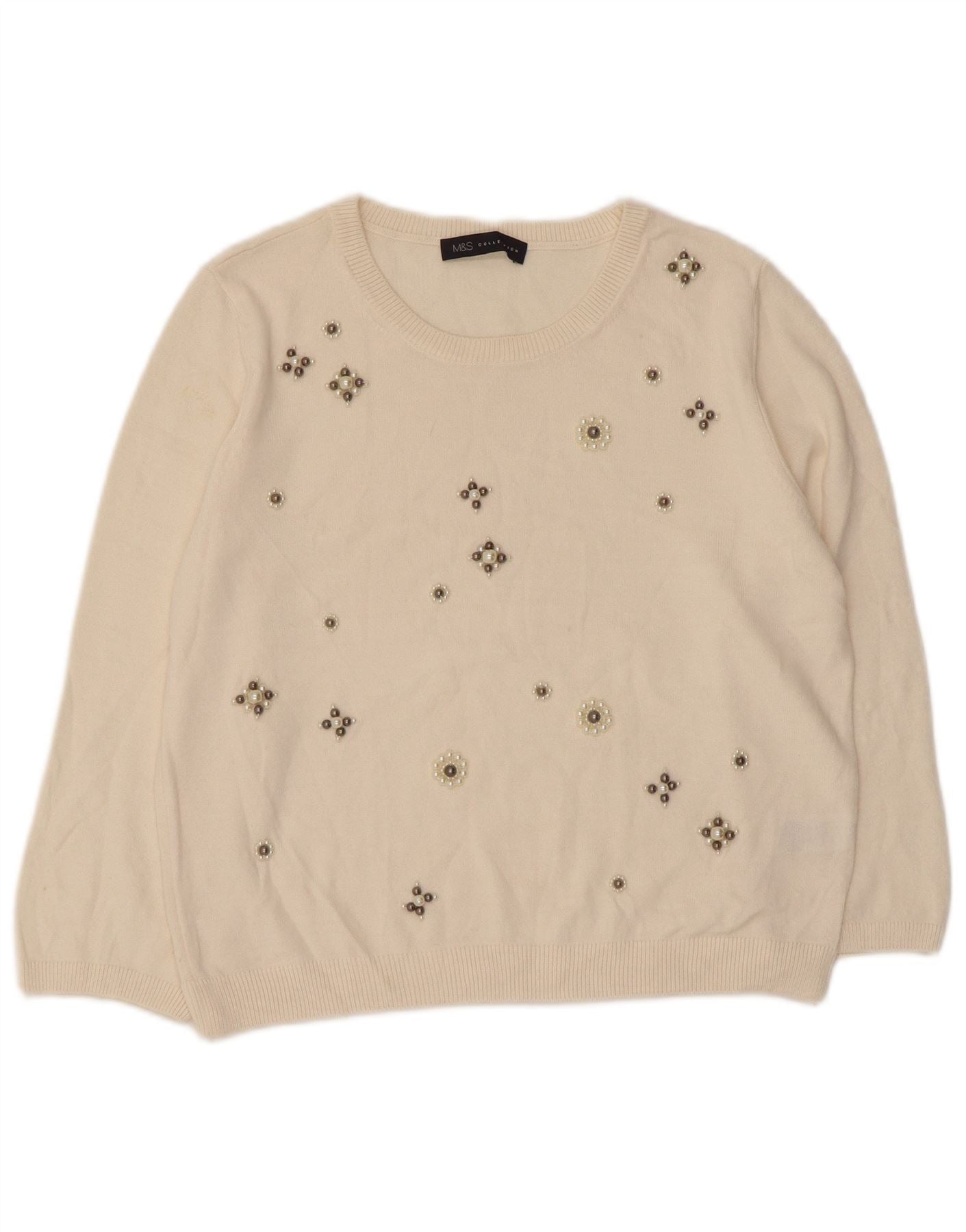 Suéter feminino MARKS & SPENCER com gola canoa Reino Unido 14 grande off white