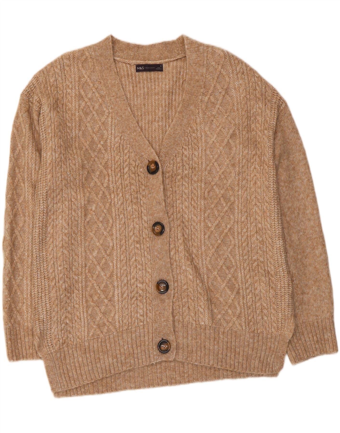 MARKS & SPENCER Womens Cardigan Sweater UK 14 Medium Beige Acrylic