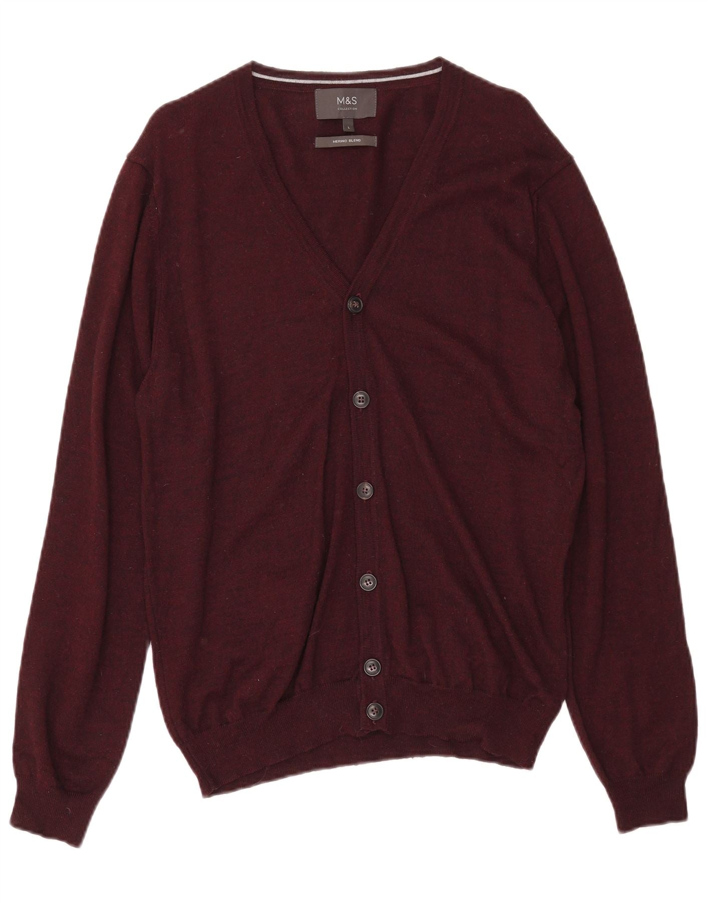 Suéter cardigã feminino MARKS & SPENCER Reino Unido 16 grande lã manchada cor de vinho