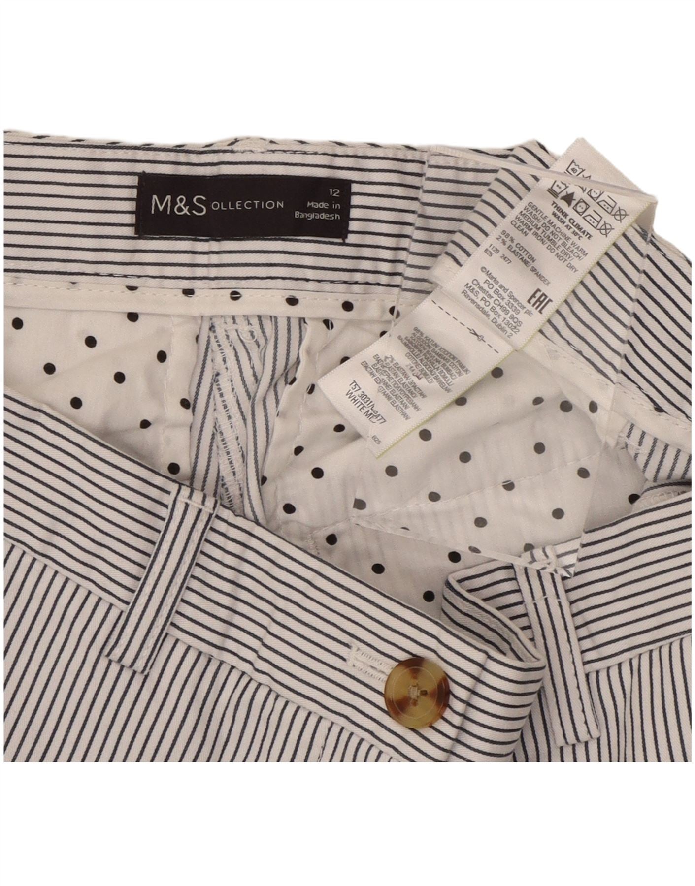 Shorts chino feminino MARKS & SPENCER UK 12 médio W30 listrado branco