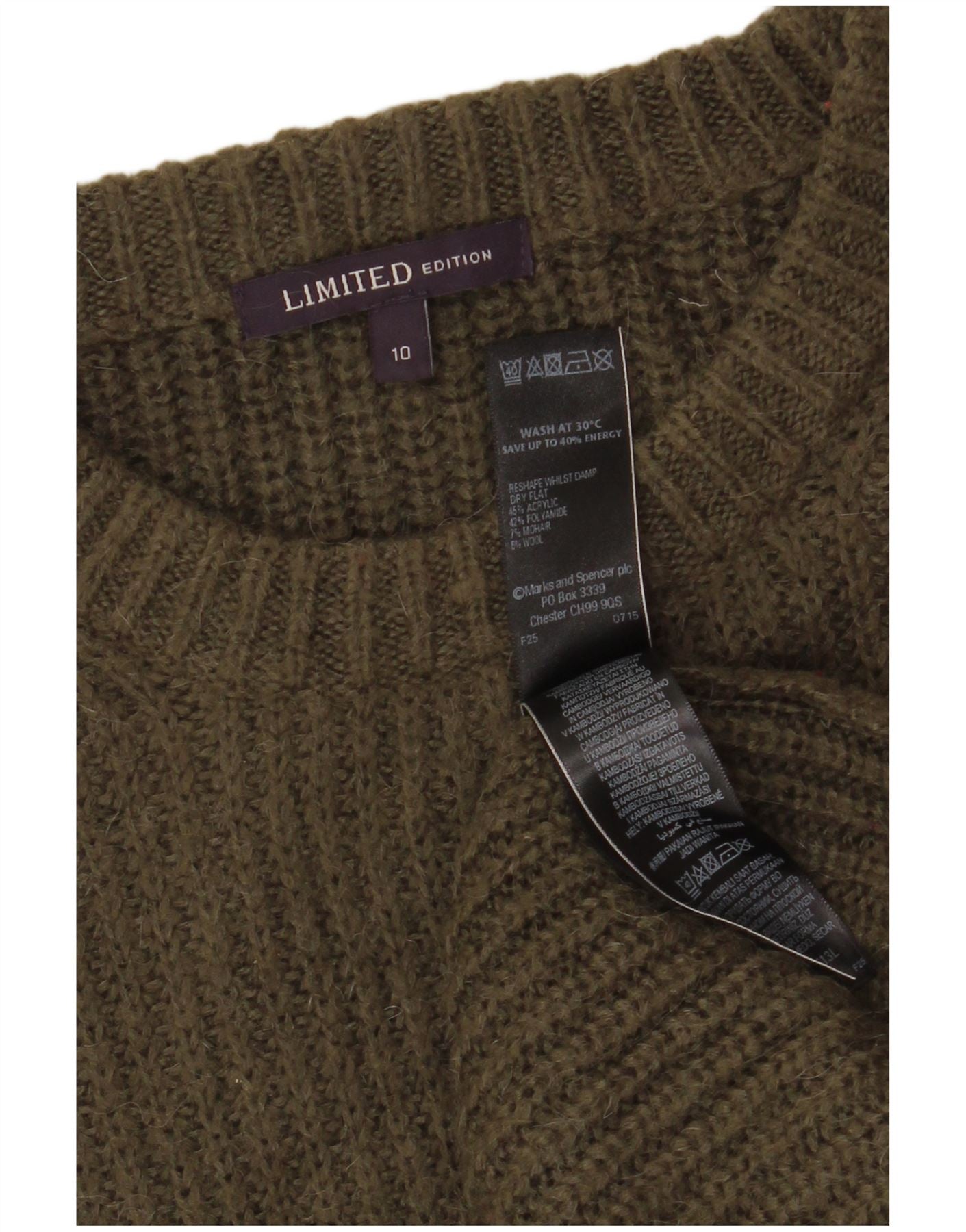 Suéter feminino Marks & Spencer com gola redonda Reino Unido 10 pequeno acrílico verde
