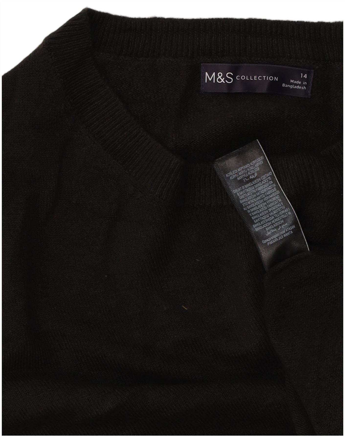 Suéter feminino Marks & Spencer com gola redonda Reino Unido 14 acrílico preto médio