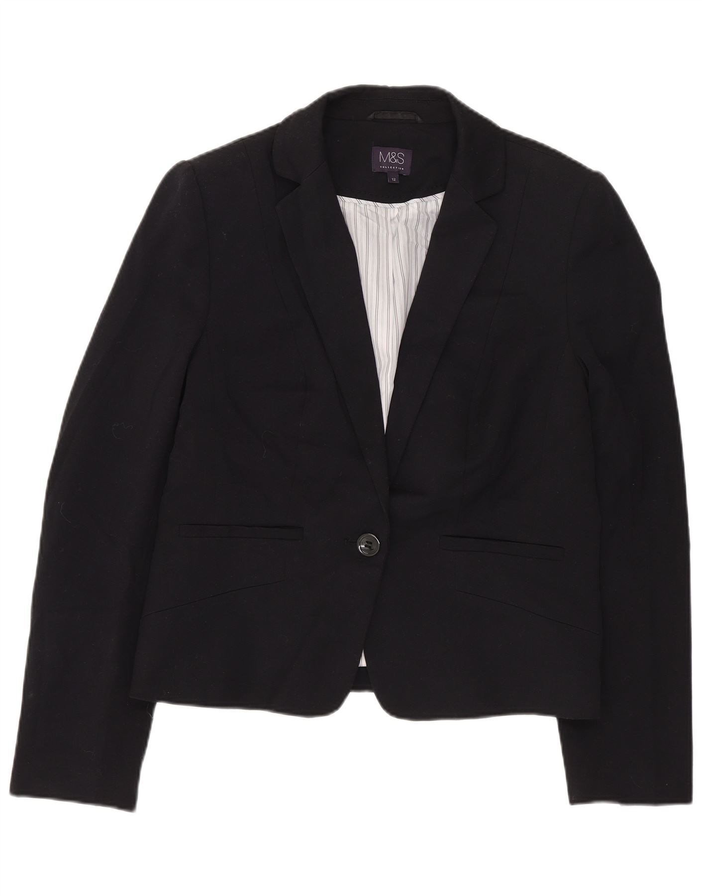 Jaqueta Blazer Feminina Marks & Spencer Crop 1 Botão Reino Unido 12 Médio Preto