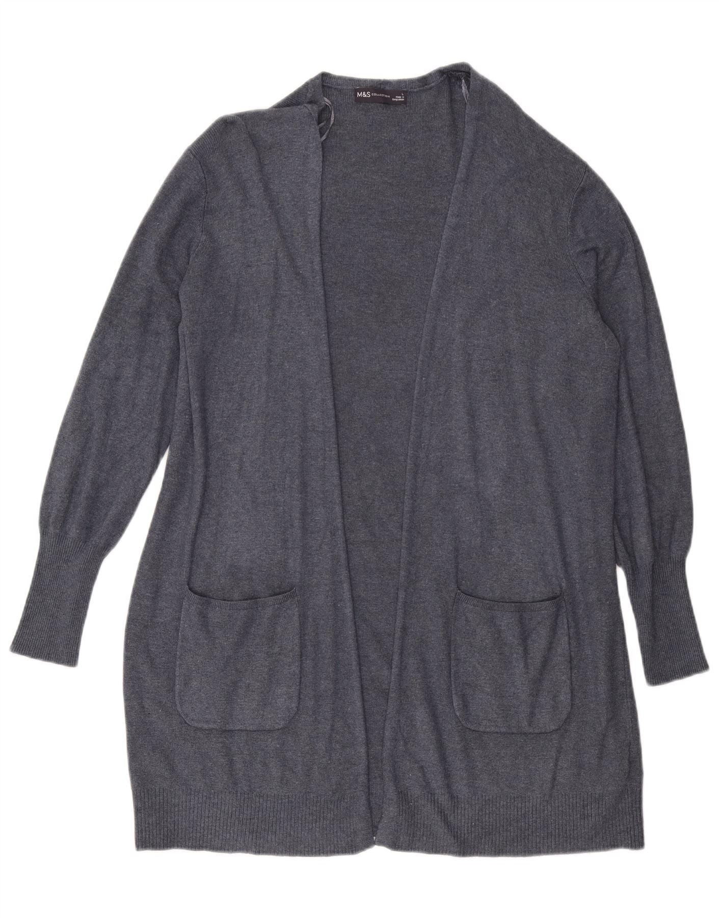 Suéter cardigã feminino aberto com palangre MARKS & SPENCER Reino Unido 16 grande azul