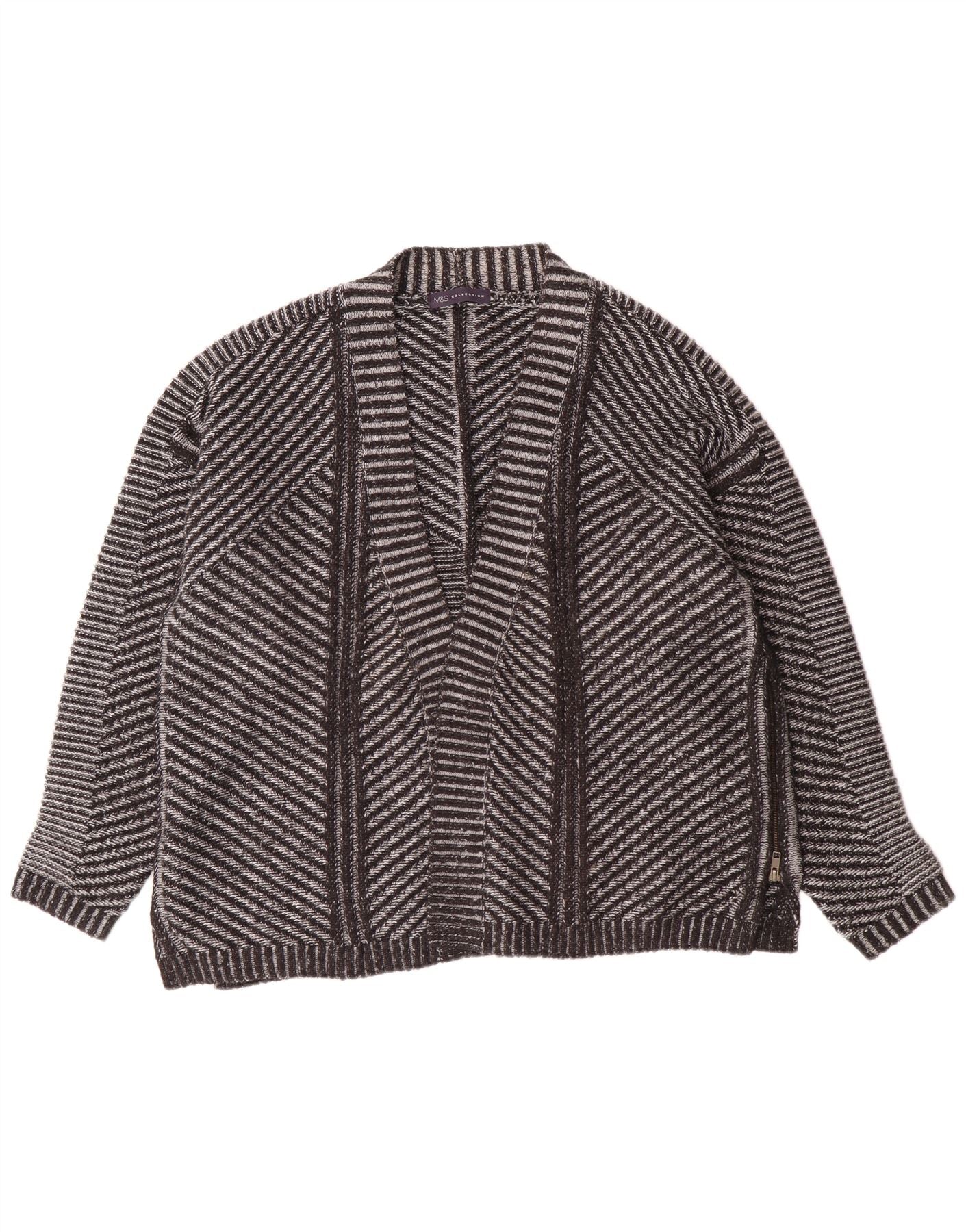 Suéter cardigã aberto feminino Marks & Spencer Reino Unido 26 5XL acrílico listrado cinza