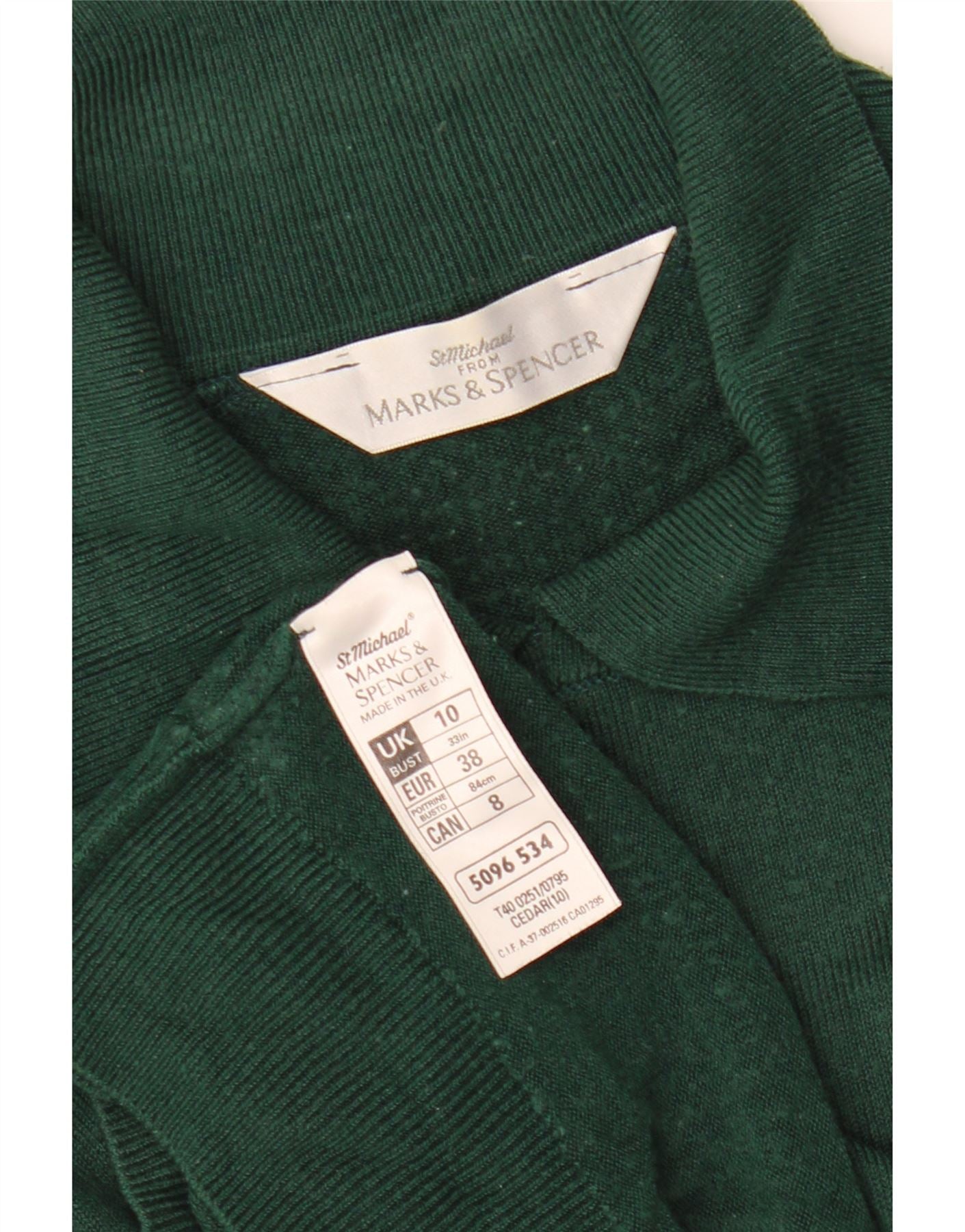 Suéter feminino com gola polo MARKS & SPENCER Reino Unido 10 pequeno acrílico verde