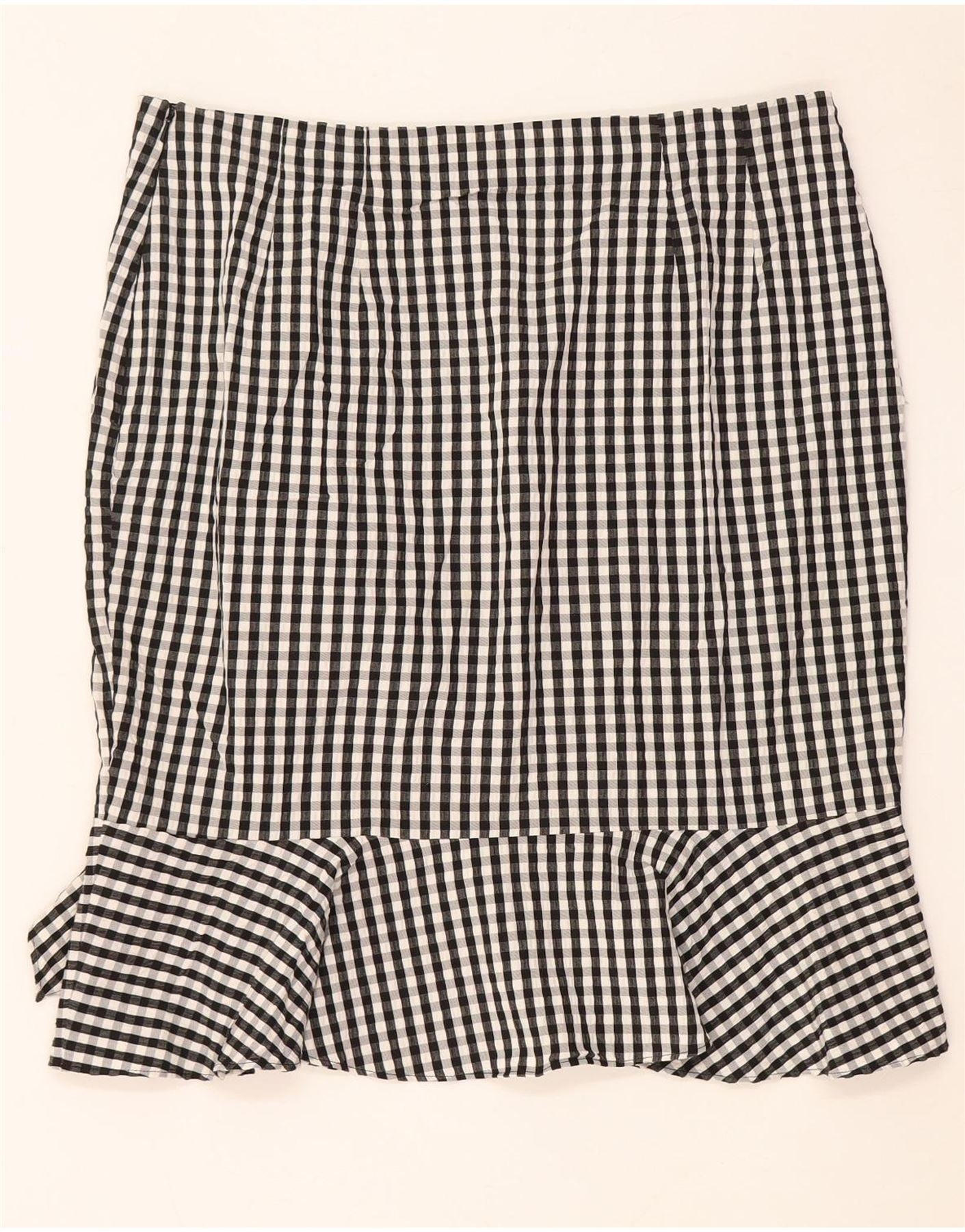 Saia feminina Marks & Spencer com babados UK 16 grande W34 preta gingham viscose
