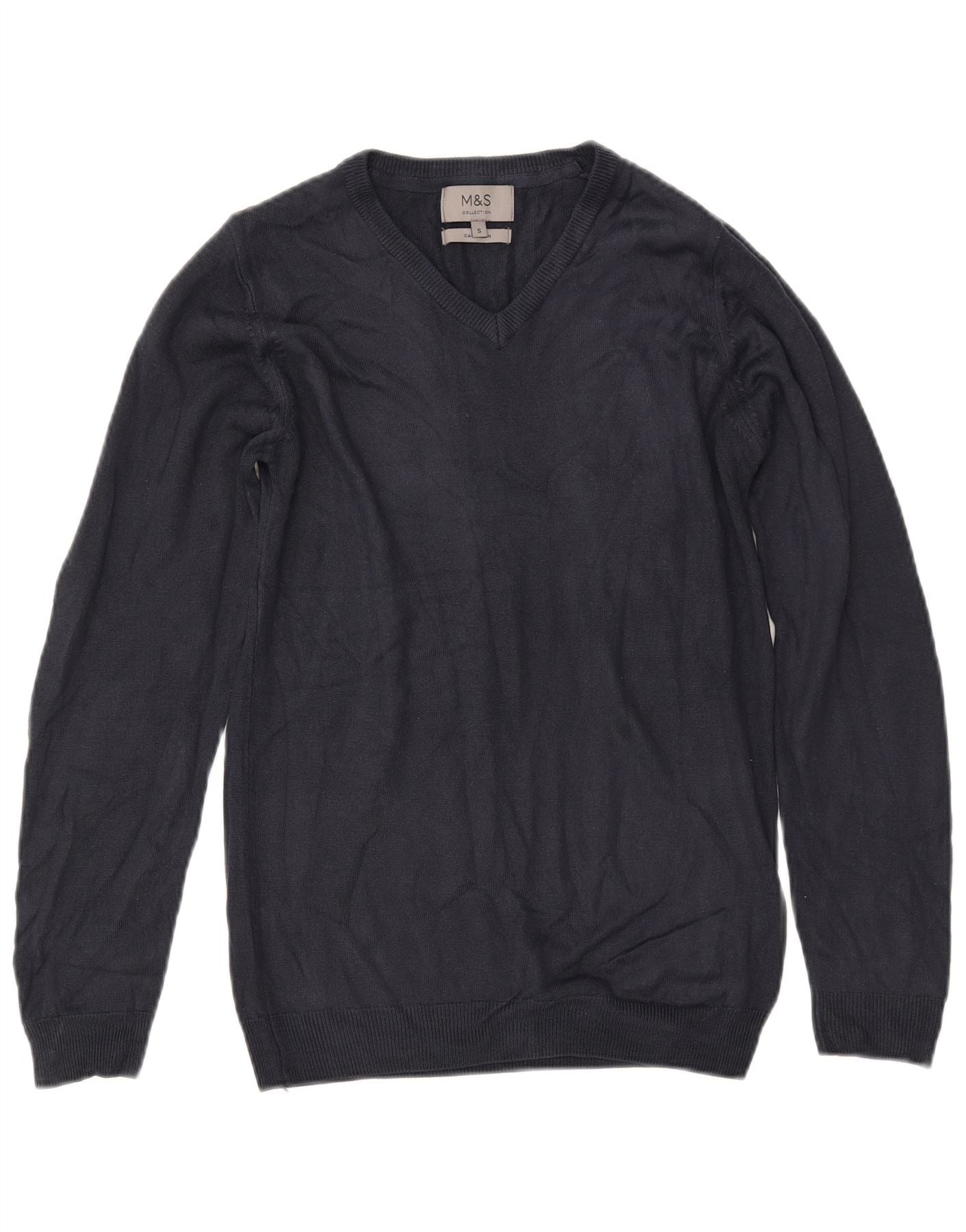 MARKS & SPENCER Suéter feminino com decote em V Reino Unido 10 pequeno azul marinho acrílico