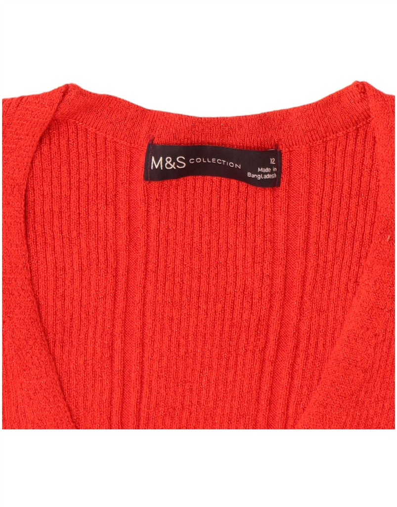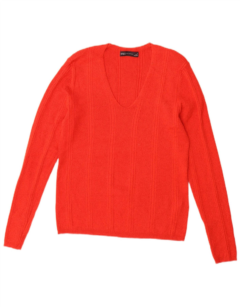 MARKS & SPENCER Womens V-Neck Jumper Sweater UK 12 Medium Red Viscose
