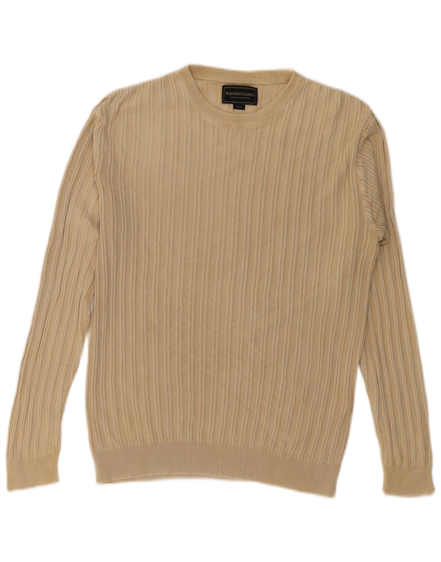 MARLBORO CLASSICS Mens Crew Neck Jumper Sweater Medium Beige Cotton
