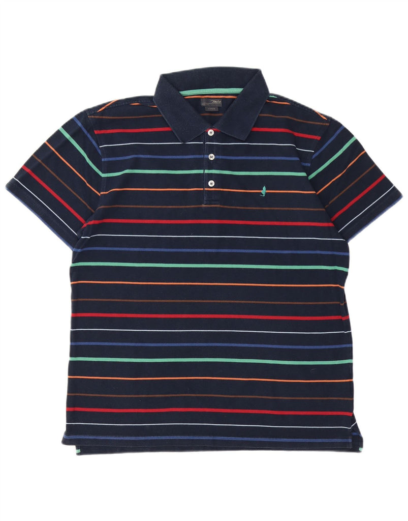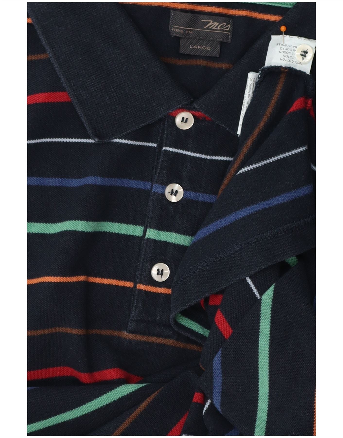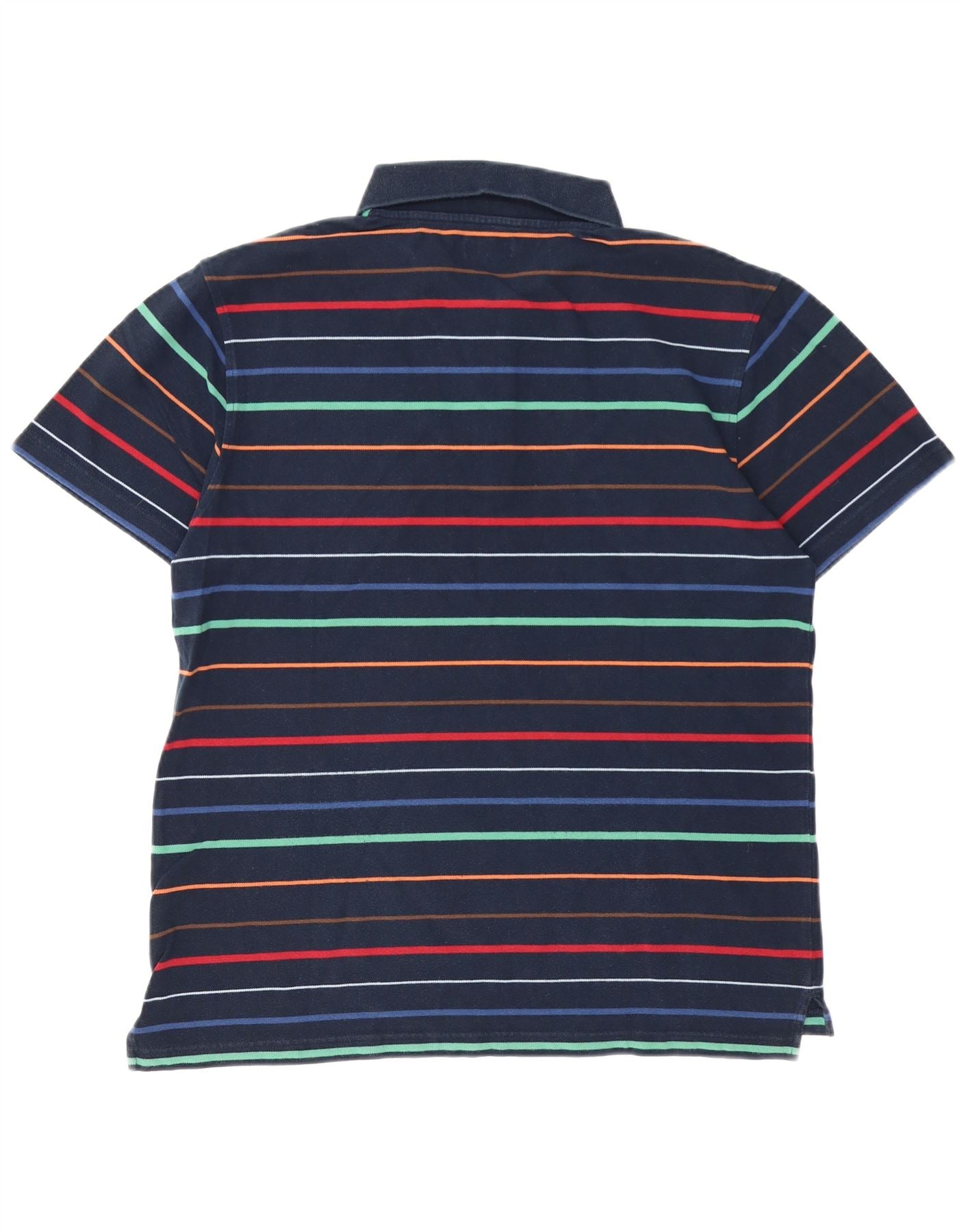 MARLBORO CLASSICS Mens Polo Shirt Large Navy Blue Striped Cotton