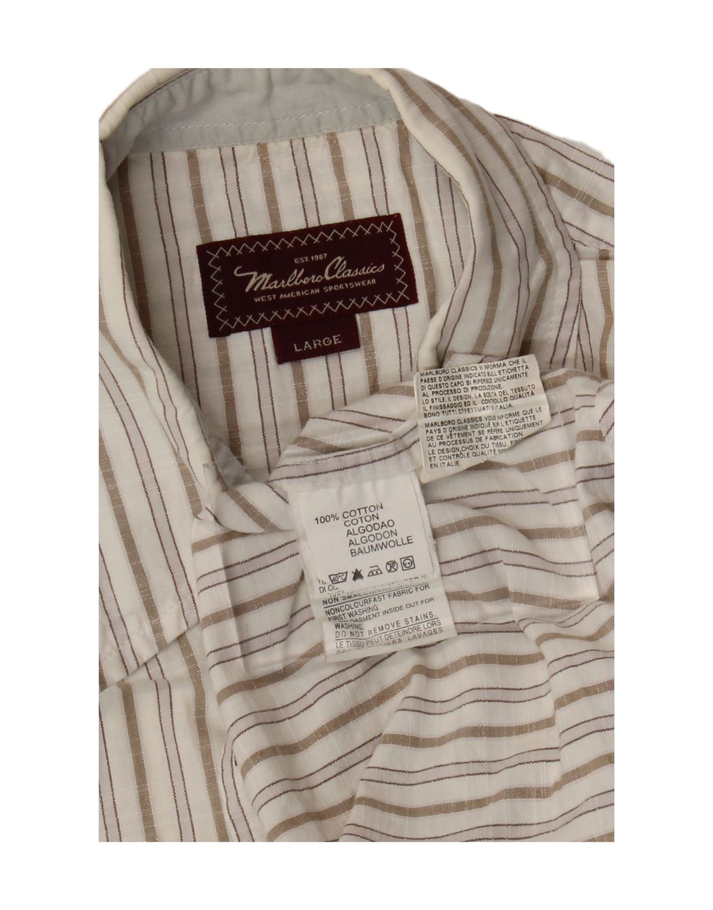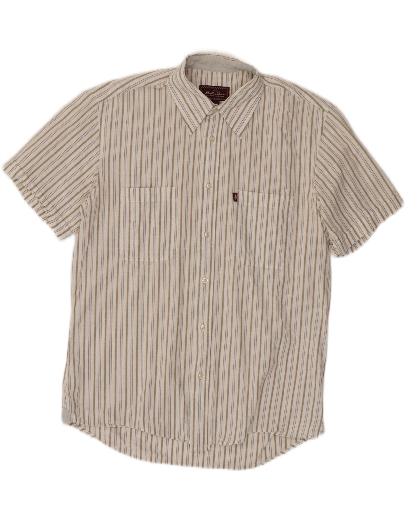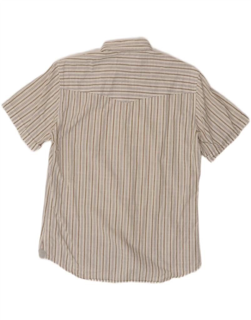 MARLBORO CLASSICS Mens Short Sleeve Shirt Large White Striped Cotton