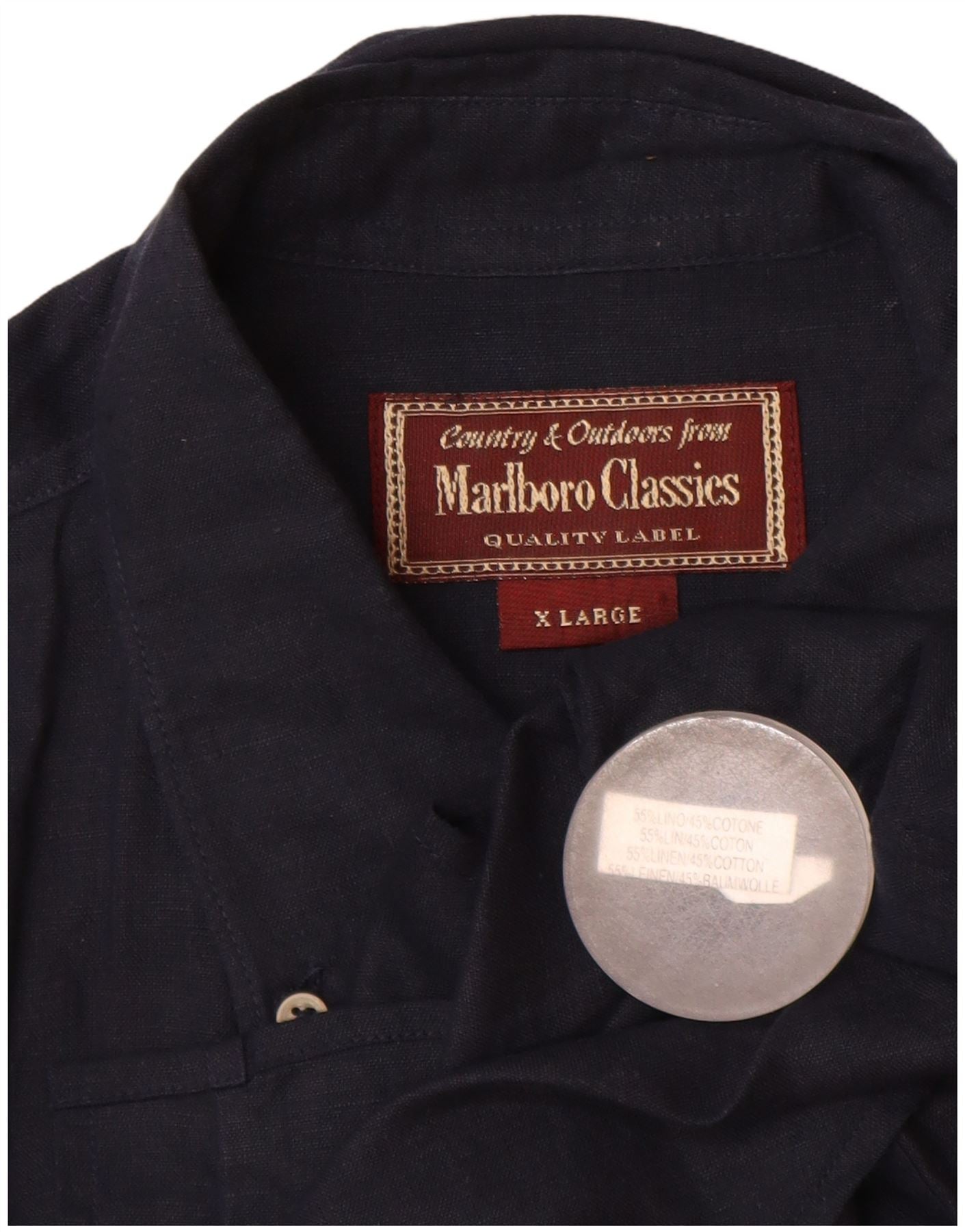 Camisa masculina de manga curta MARLBORO CLASSICS XL azul marinho linho