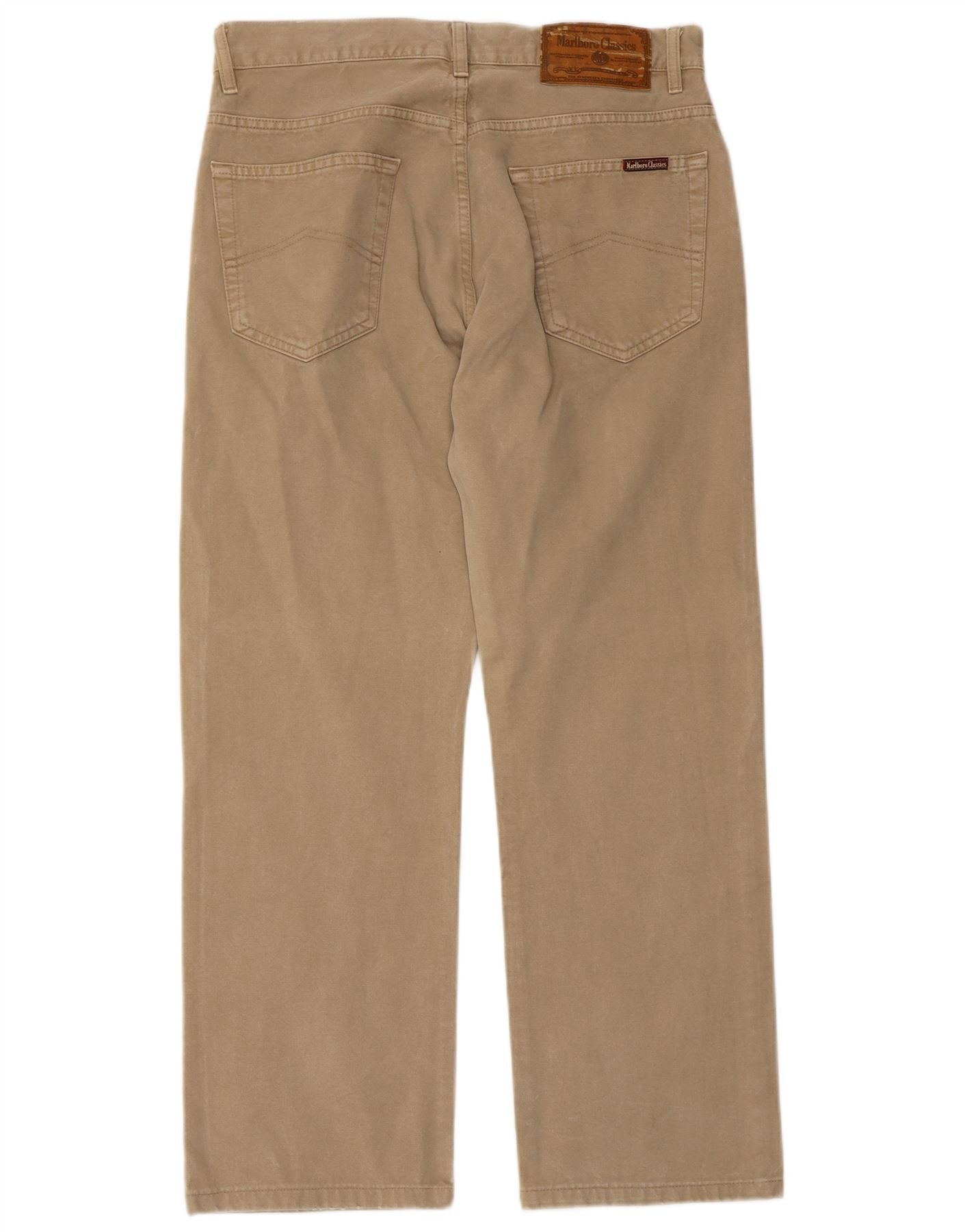 MARLBORO CLASSICS Calça masculina reta casual W33 L28 algodão bege