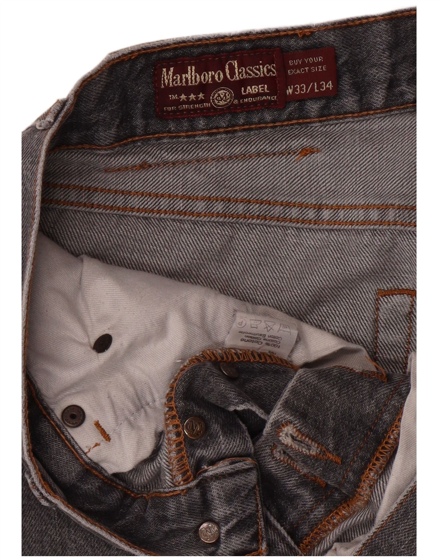 MARLBORO CLASSICS Calça jeans reta masculina W33 L31 algodão cinza