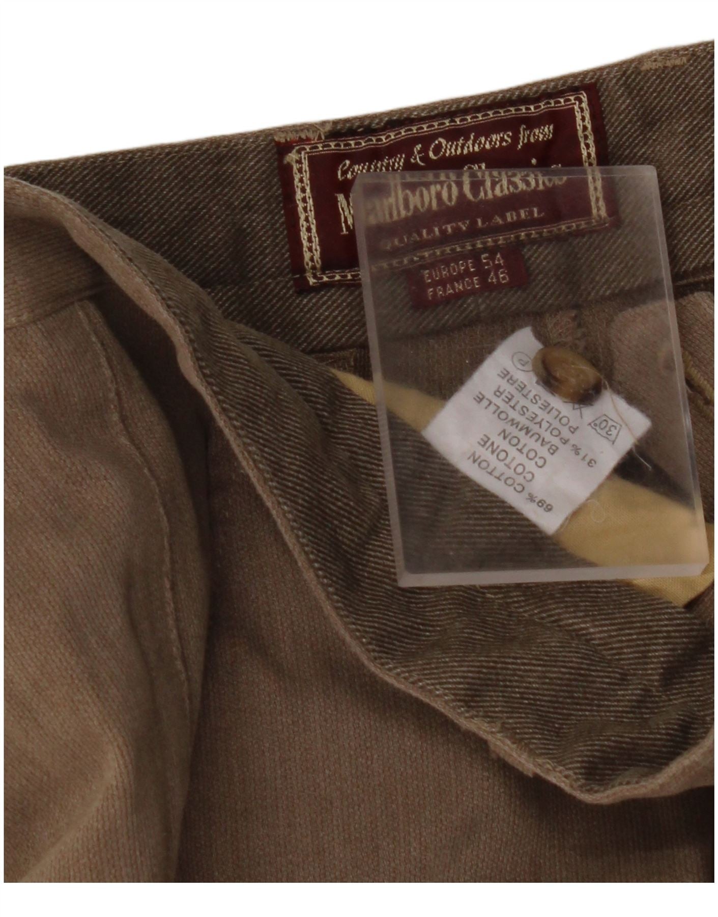 MARLBORO CLASSICS Calça Chino Masculina Cônica UE 54 2XL W36 L29 Bege