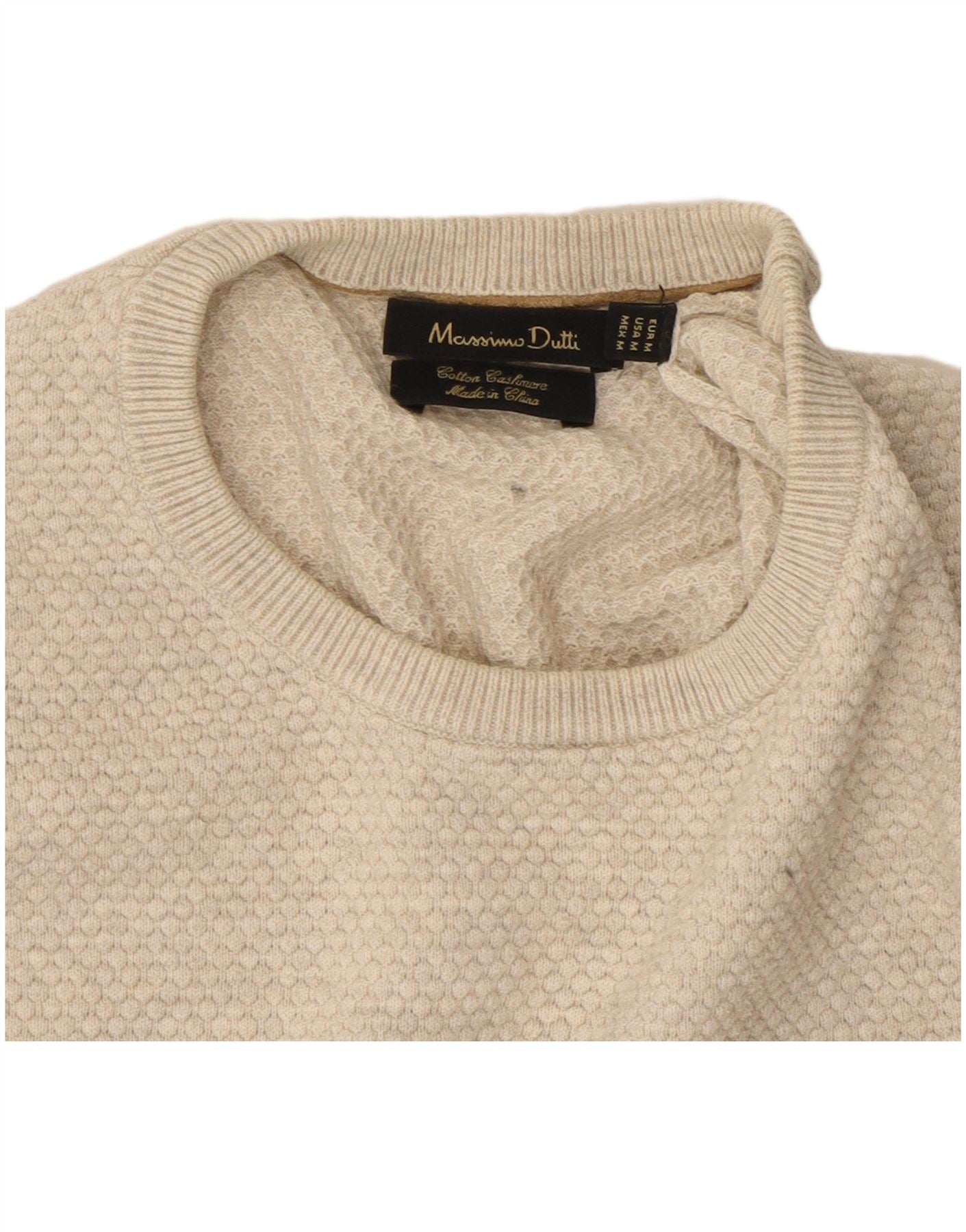 Suéter masculino Massimo Dutti com gola redonda, algodão bege médio