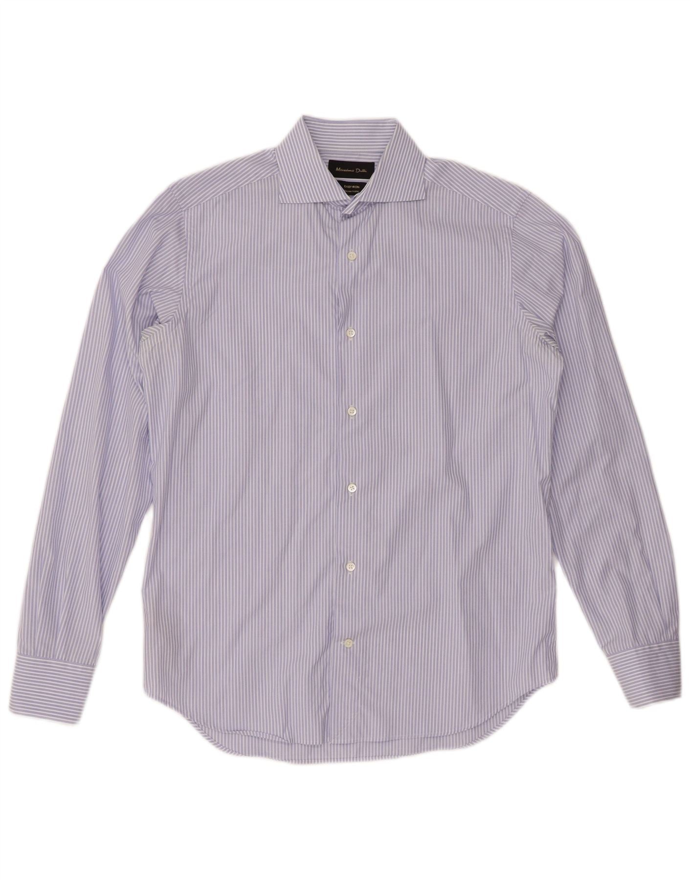 Camisa masculina MASSIMO DUTTI tamanho 15 38 algodão listrado azul médio
