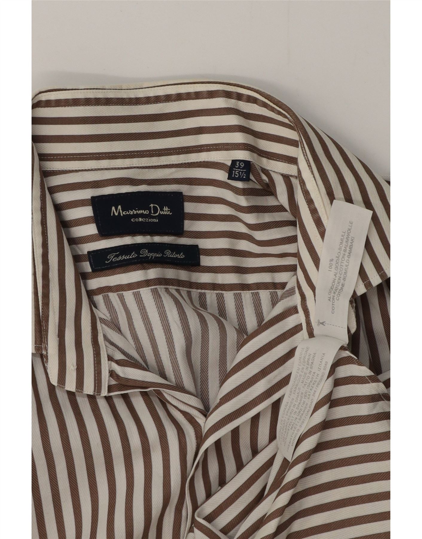 Camisa masculina MASSIMO DUTTI tamanho 39 15 1/2 algodão listrado marrom médio