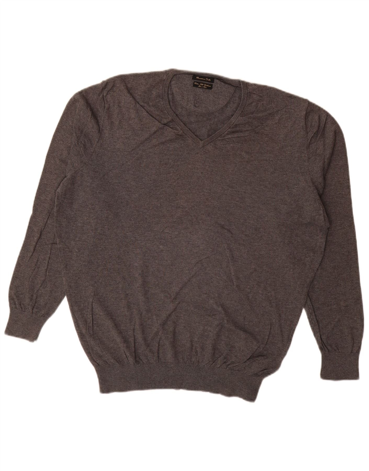 Suéter masculino MASSIMO DUTTI com decote em V XL algodão cinza