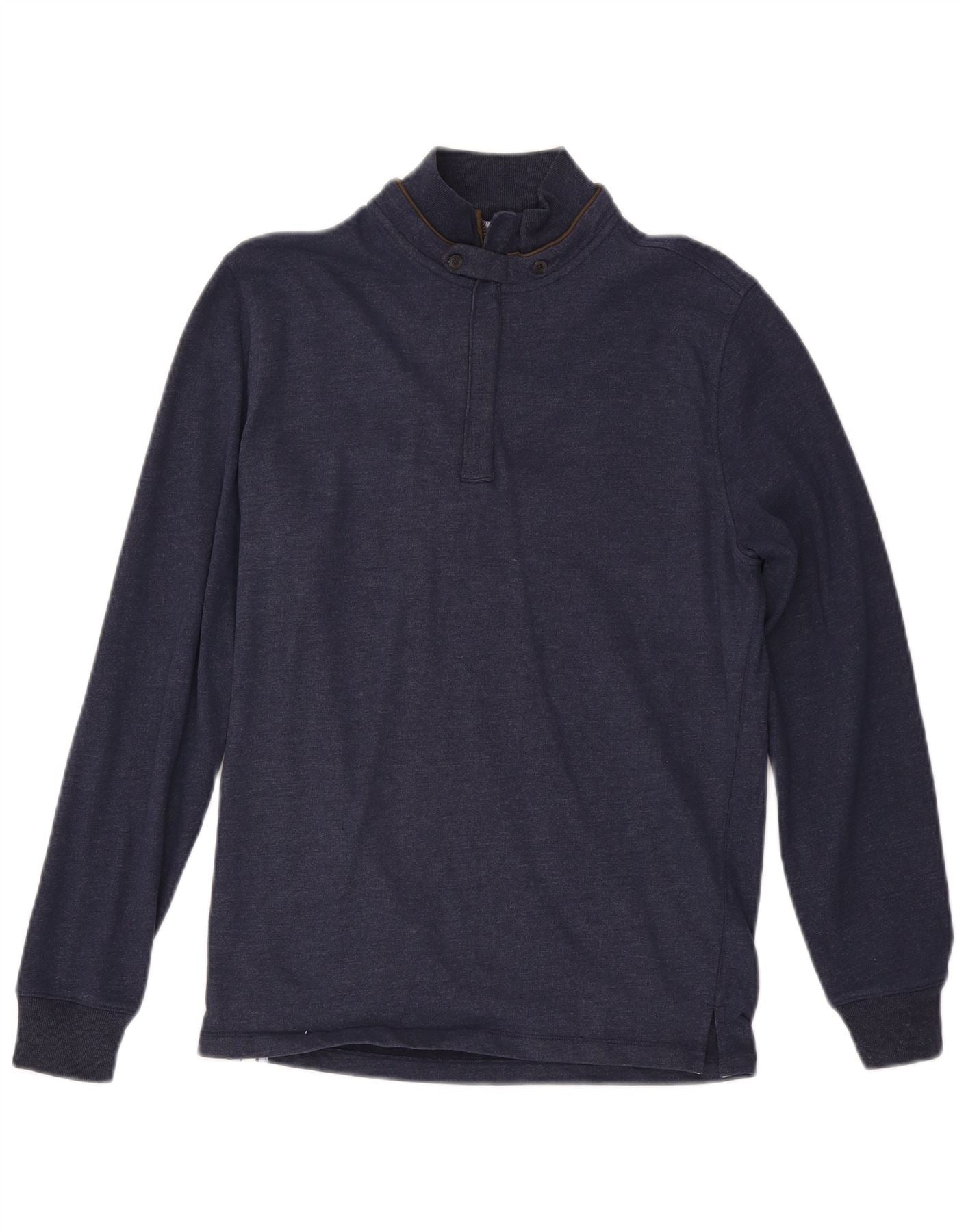 MASSIMO DUTTI Camiseta masculina com gola com zíper e manga comprida de algodão azul marinho médio