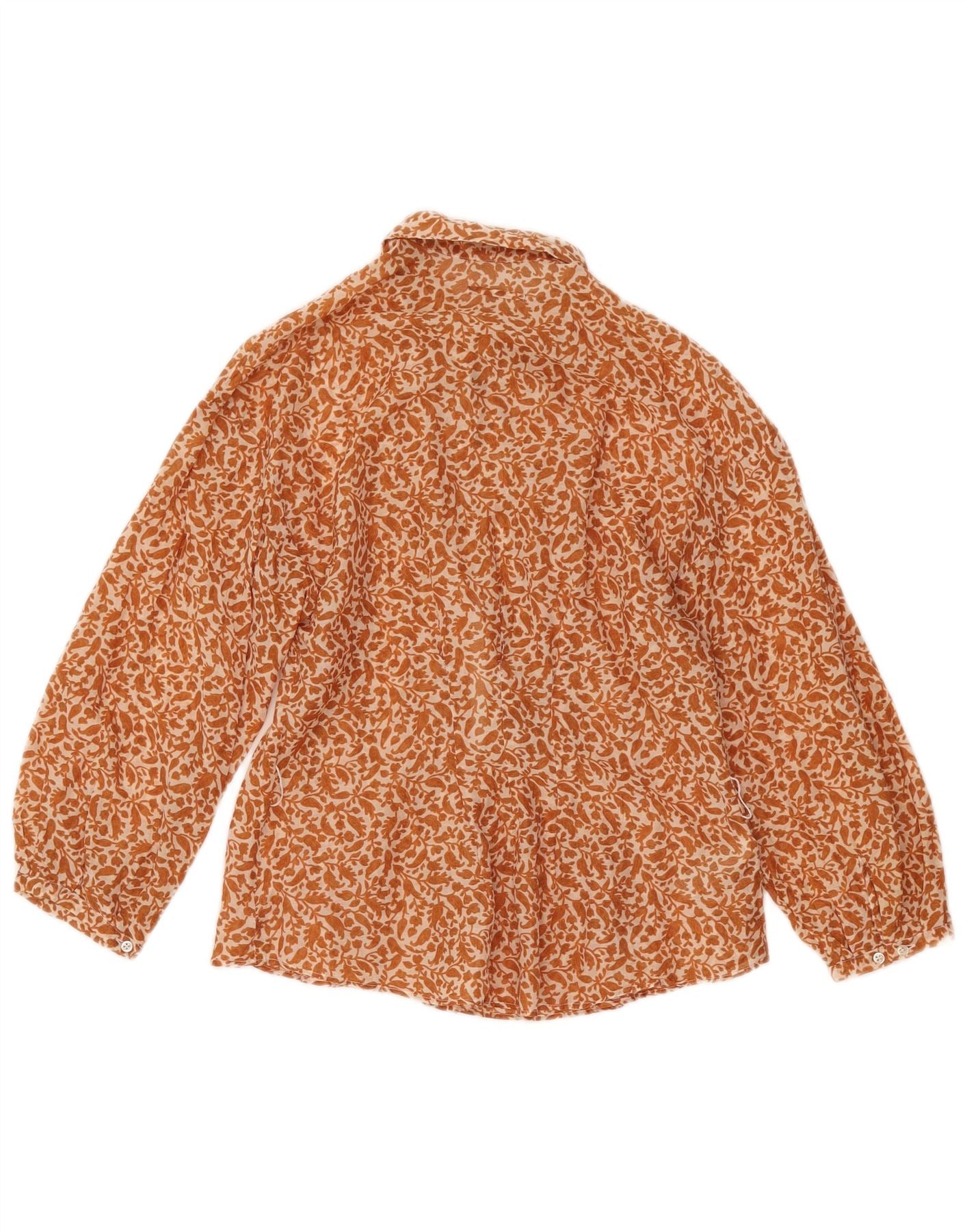 - Descrição da IA: Esta blusa feminina Massimo Dutti é confeccionada em chiffon leve de viscose. Possui um intrincado padrão floral laranja contra uma base esbranquiçada. O decote com gola e botões na frente oferecem detalhes clássicos. Mangas compridas e ajuste descontraído garantem um uso confortável. Esta peça de estilo boêmio combina elegância com charme sem esforço.