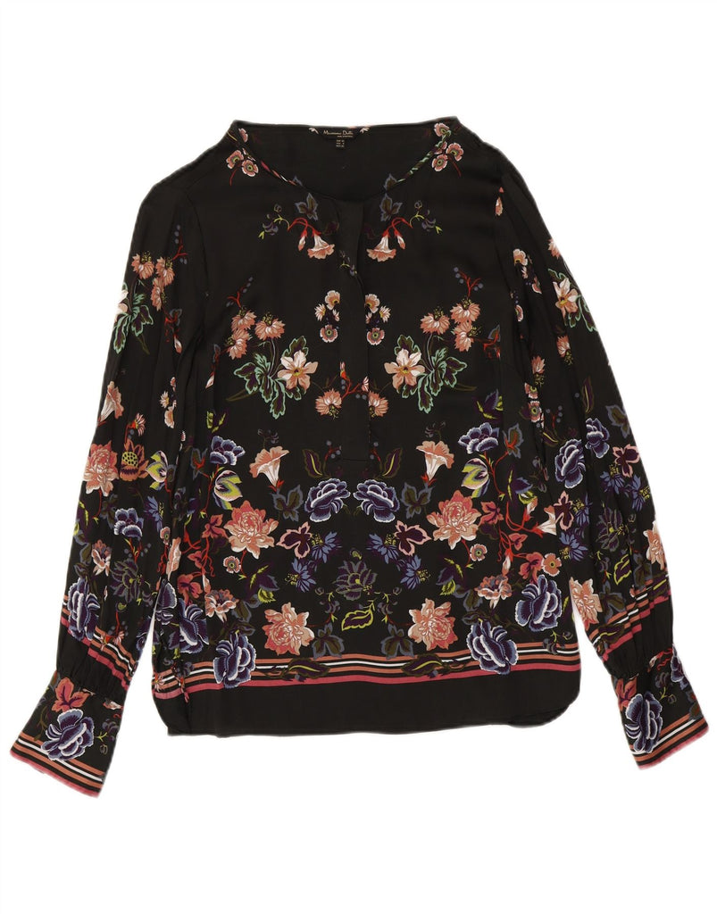 MASSIMO DUTTI Womens Front Tie Blouse Top EU 40 Medium Black Floral