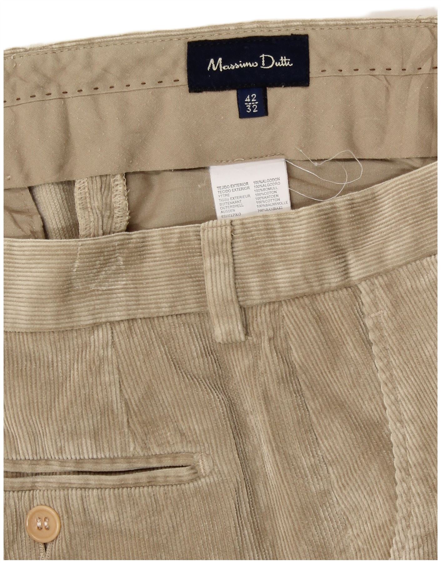 Calça feminina reta de veludo MASSIMO DUTTI UE 42 grande W32 L28 bege
