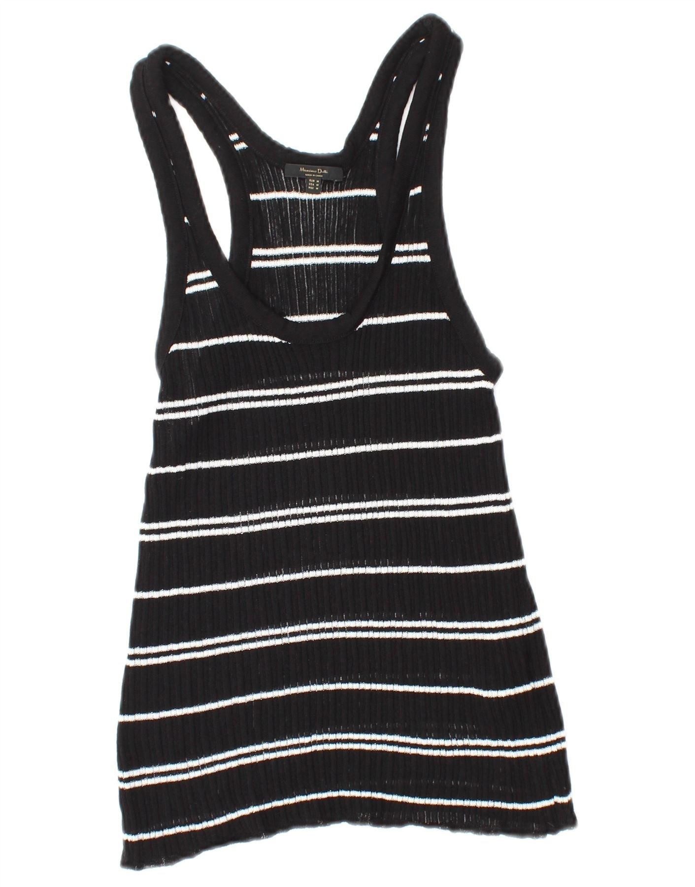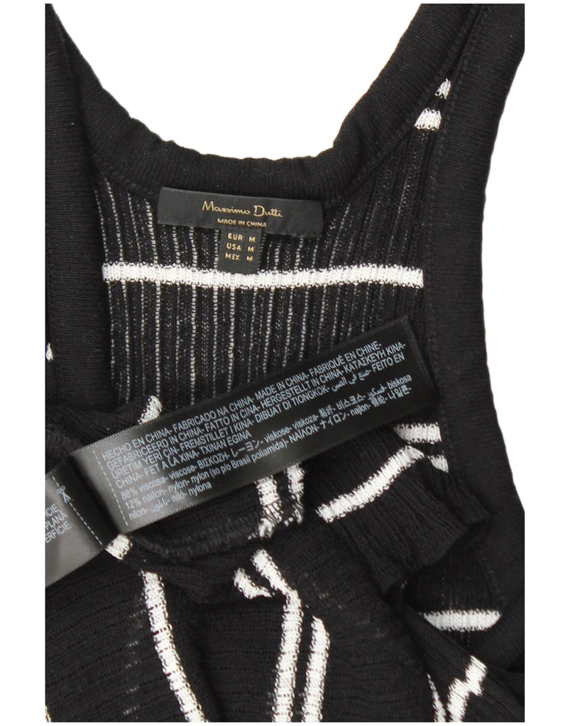 MASSIMO DUTTI Womens Vest Tank Top UK 12 Medium Black Striped Viscose