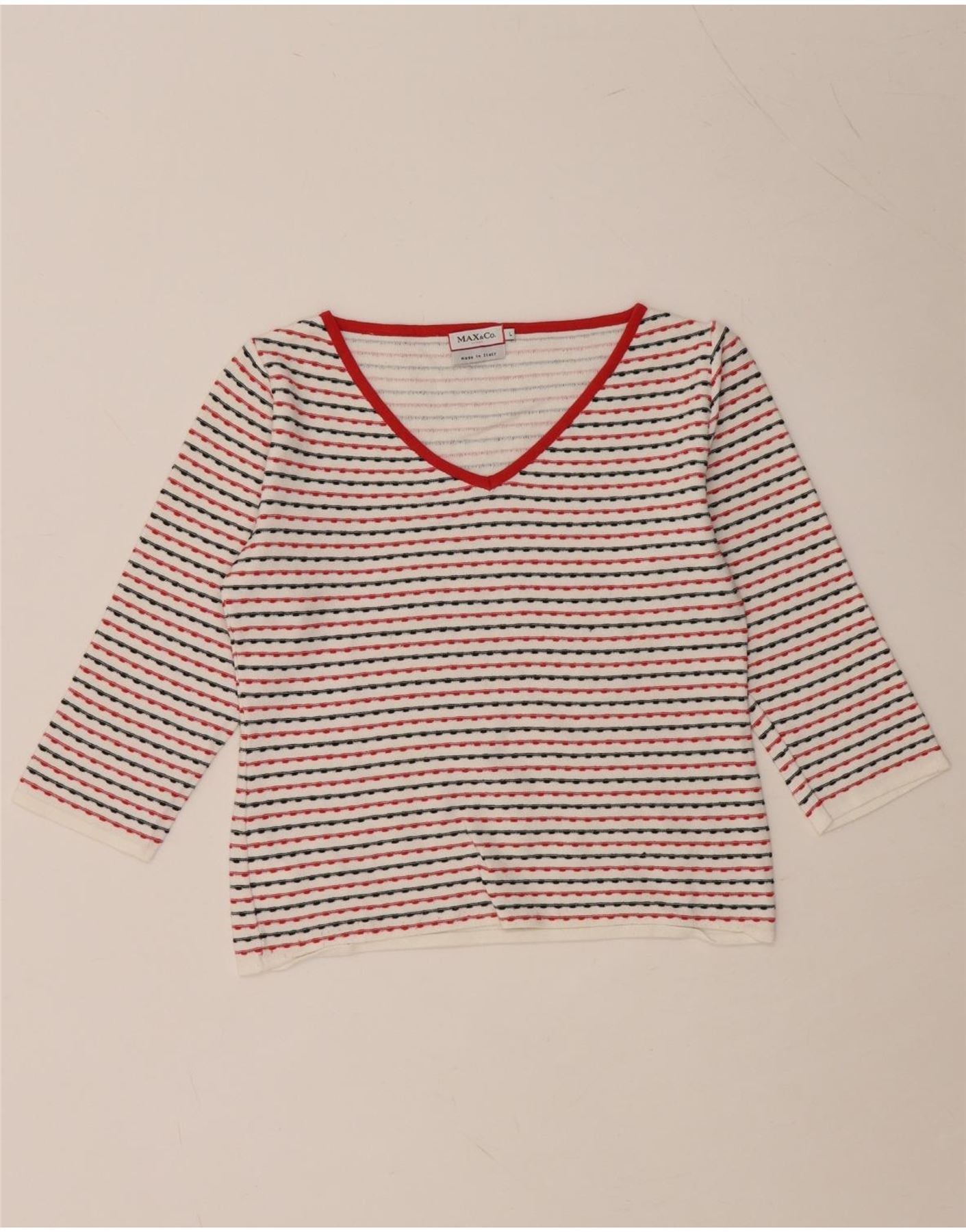 Top curto feminino manga 3/4 Reino Unido 14 viscose listrada branca grande MAX & CO.