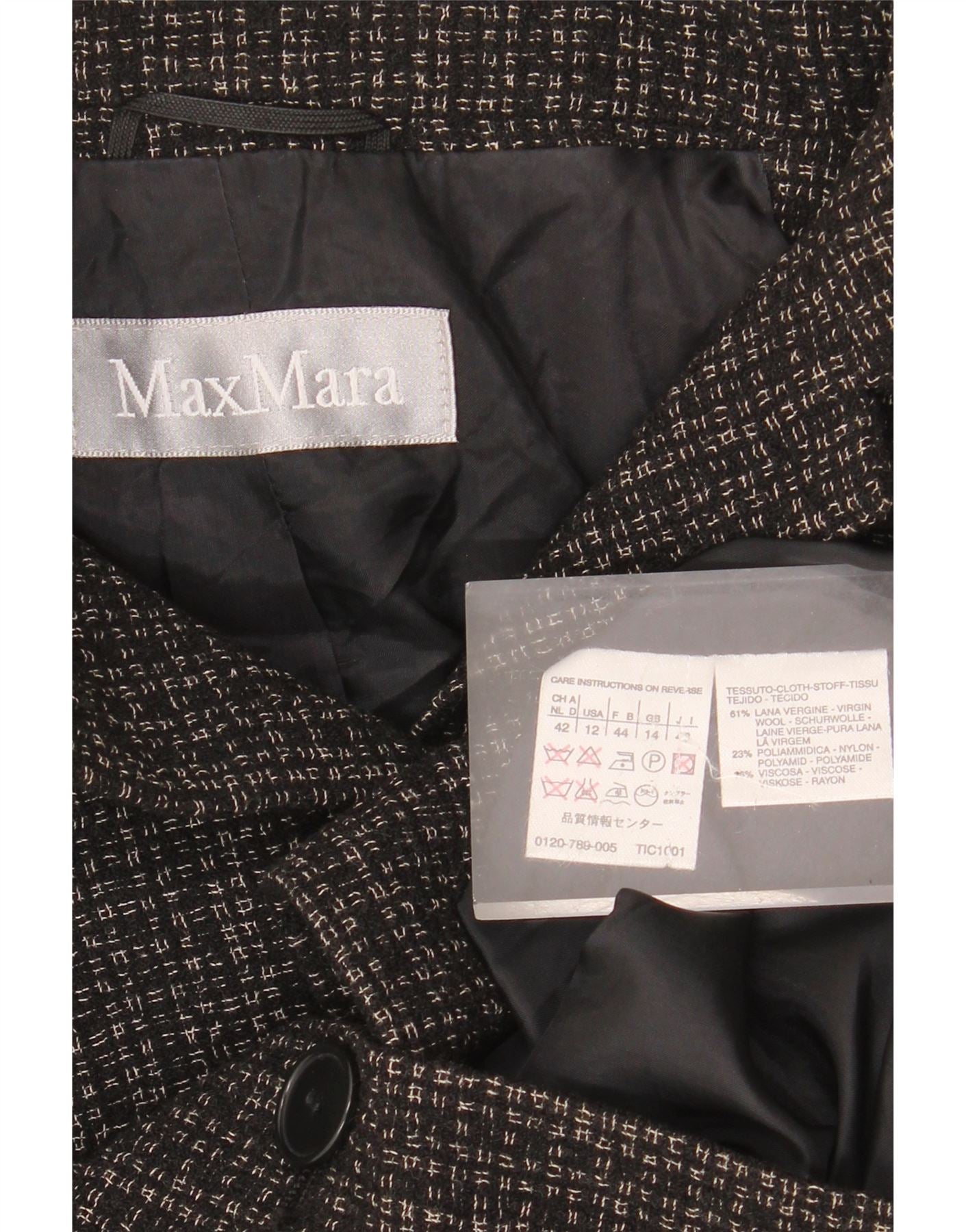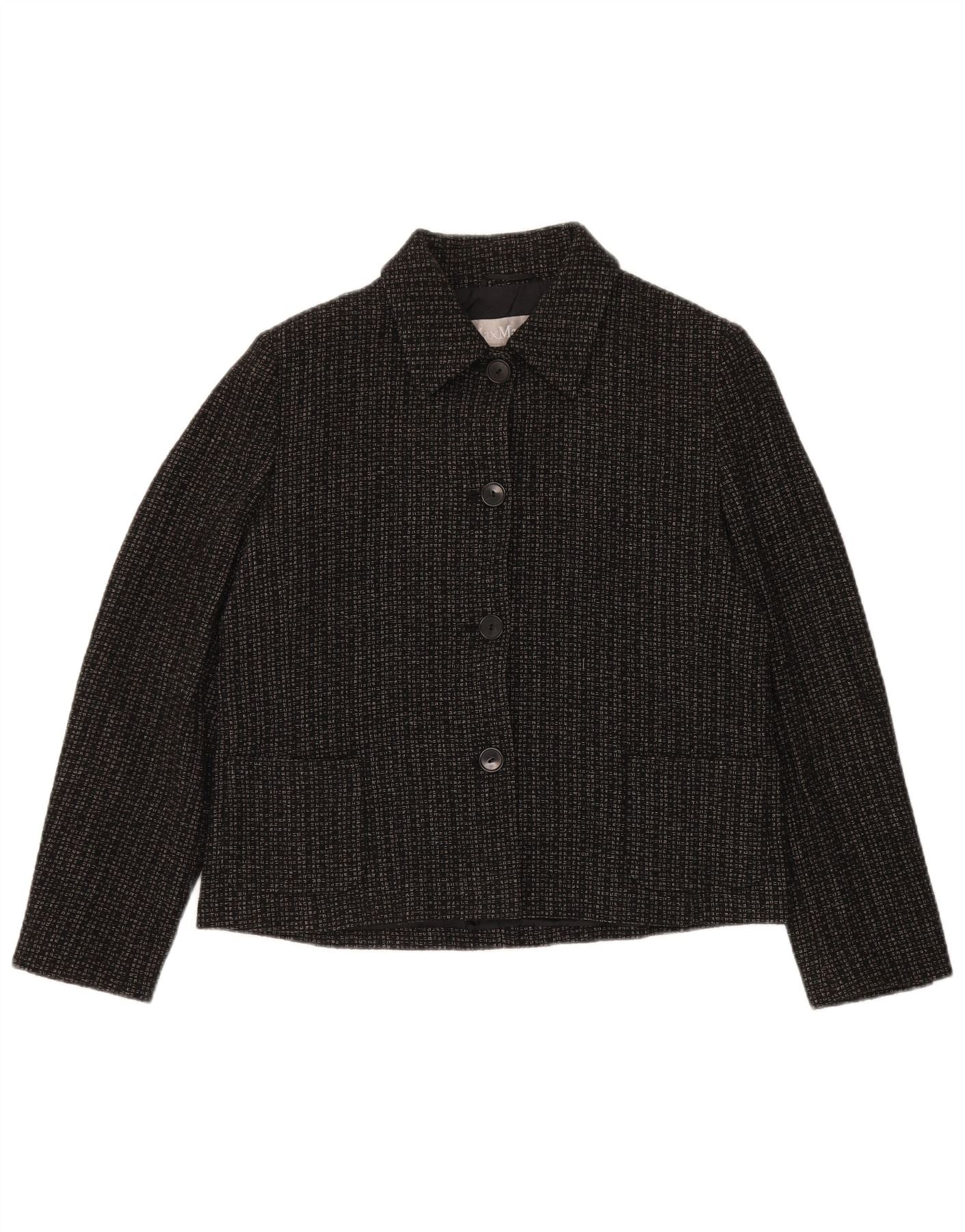 MAX MARA Womens 4 Button Blazer Jacket UK 14 Large Black Geometric