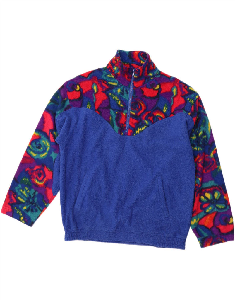 MC CRAE'S Mens Zip Neck Fleece Jumper Large Blue Floral Polyester