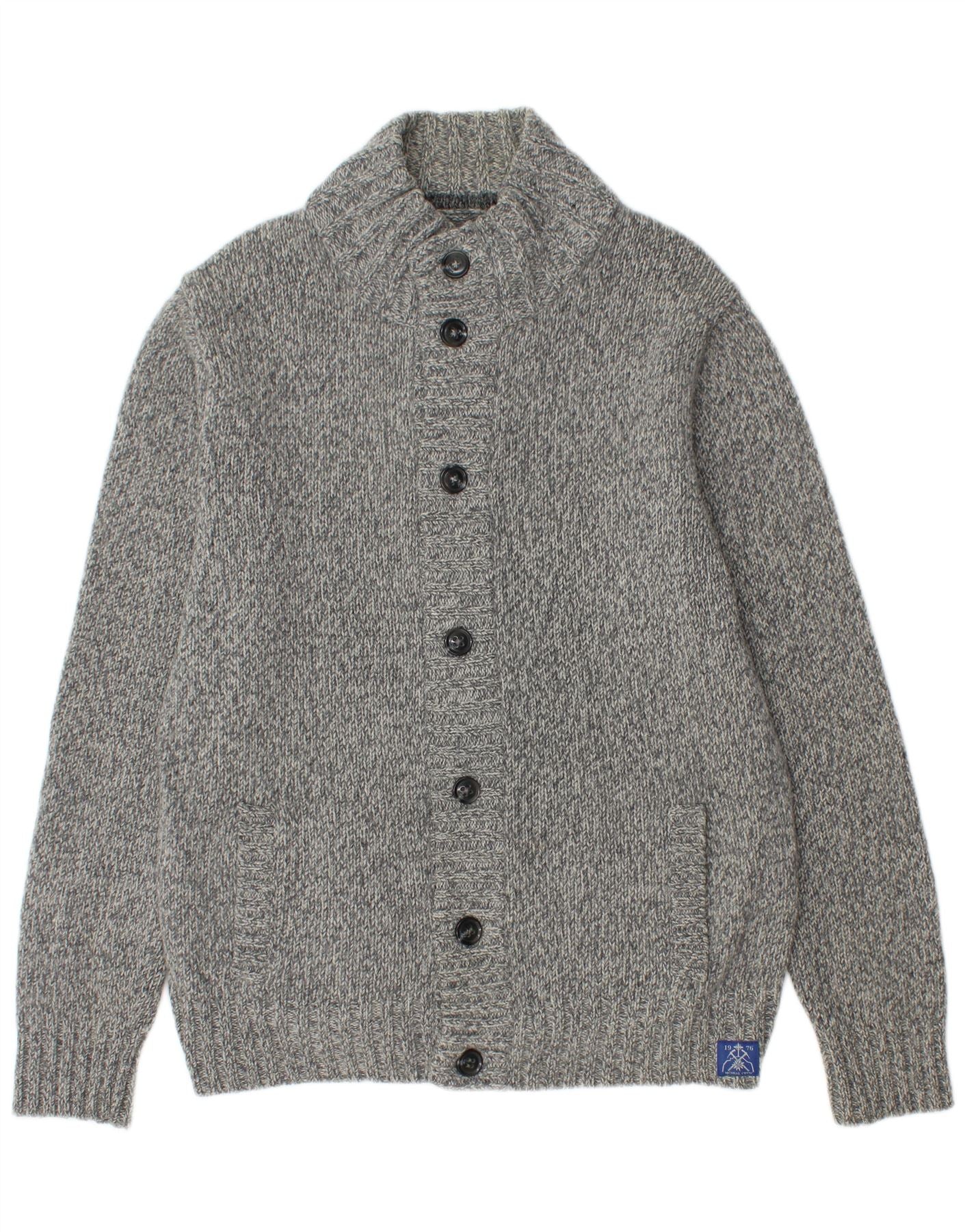 - Descrição da IA: Este suéter cardigã masculino McNeal é feito de um tecido de malha pesado em um padrão cinza salpicado. Possui uma gola xale distinta e uma frente com botões completos. Mangas compridas e corte regular garantem conforto e calor. Bolsos práticos estão integrados ao design. O estilo clássico oferece uma peça de sobreposição robusta e versátil para qualquer guarda-roupa.