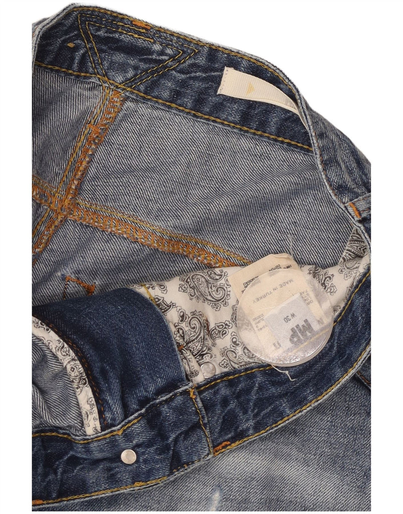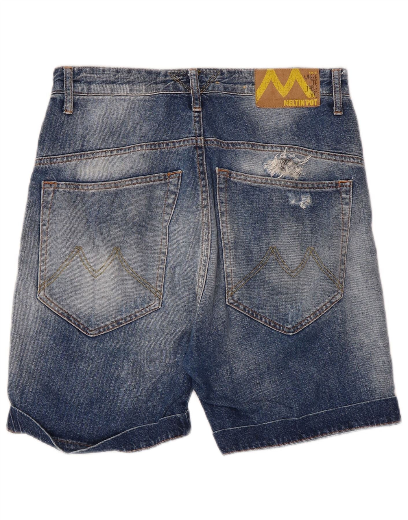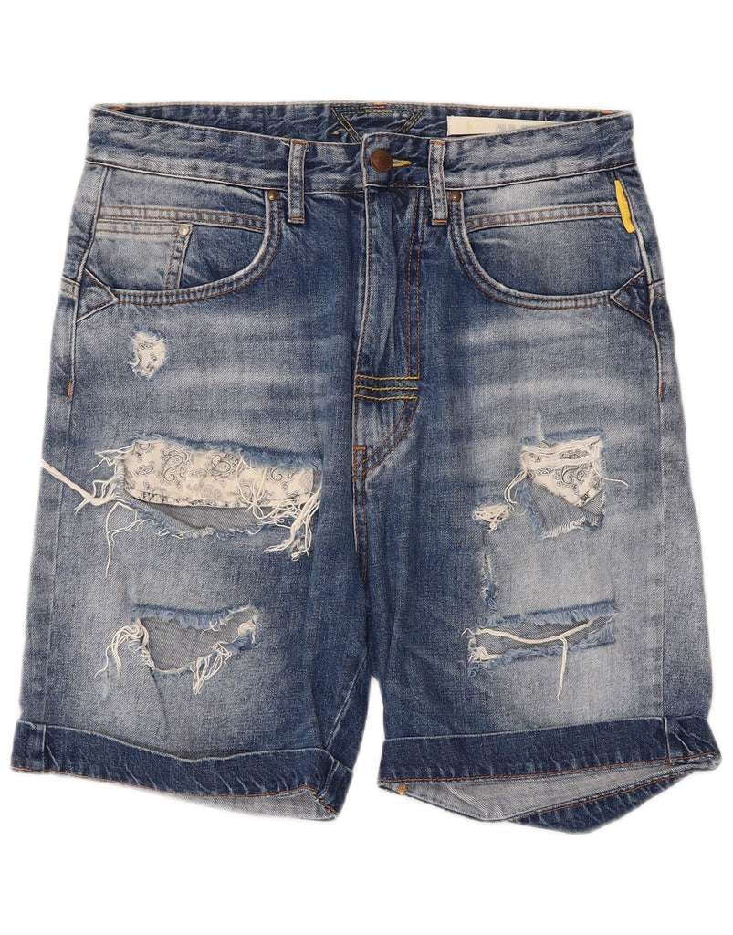 MELTIN' POT Mens Distressed Denim Shorts W30 Medium Blue Cotton