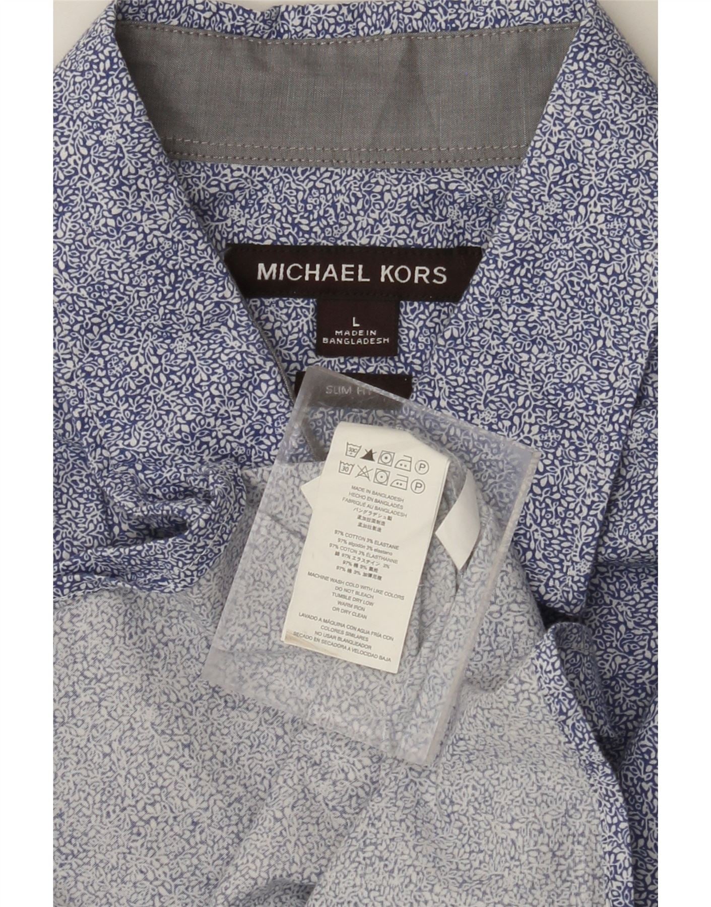 Camisa masculina MICHAEL KORS Slim Fit grande algodão floral azul