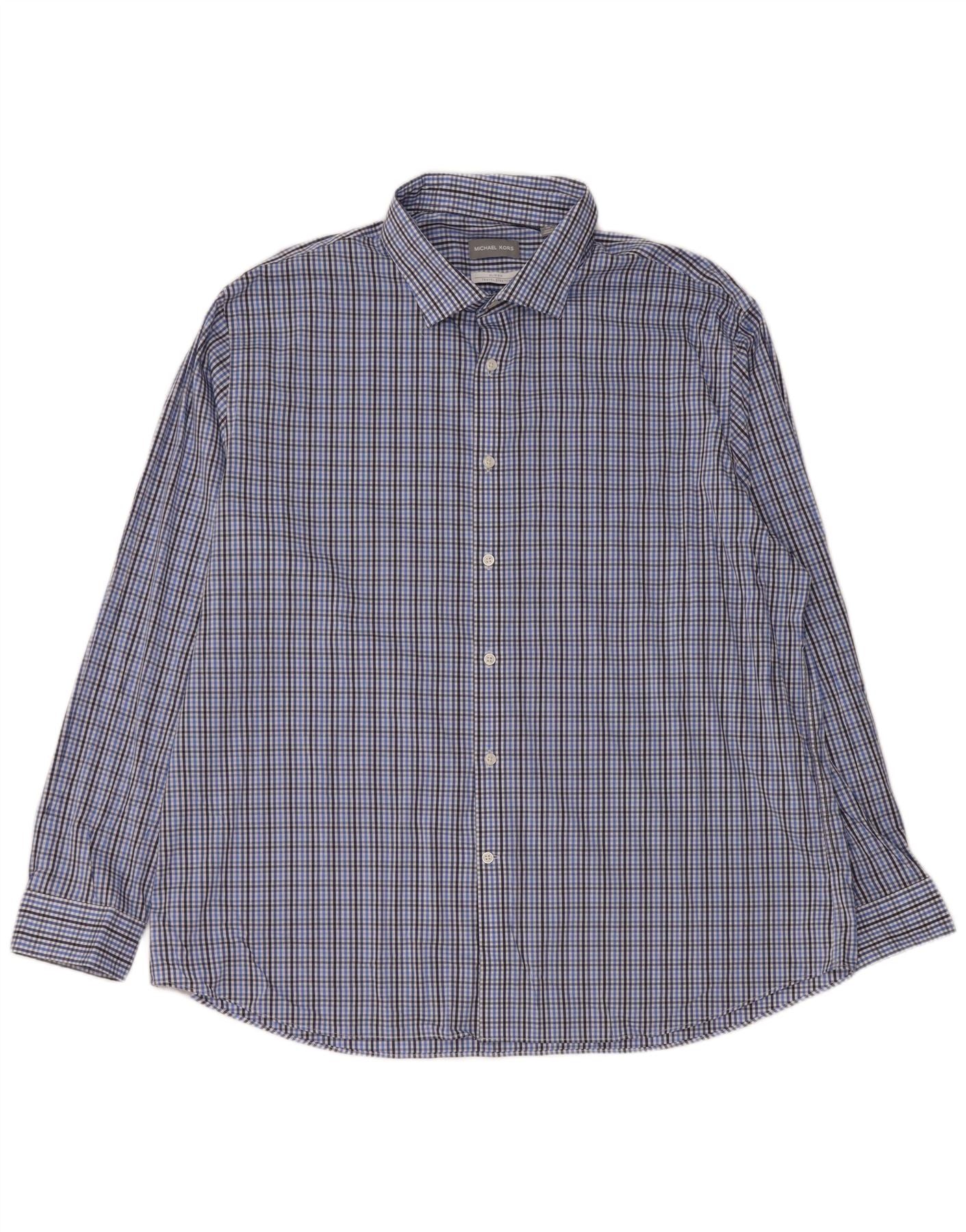 Camisa masculina MICHAEL KORS Slim Fit tamanho 18 1/2 2XL algodão xadrez azul