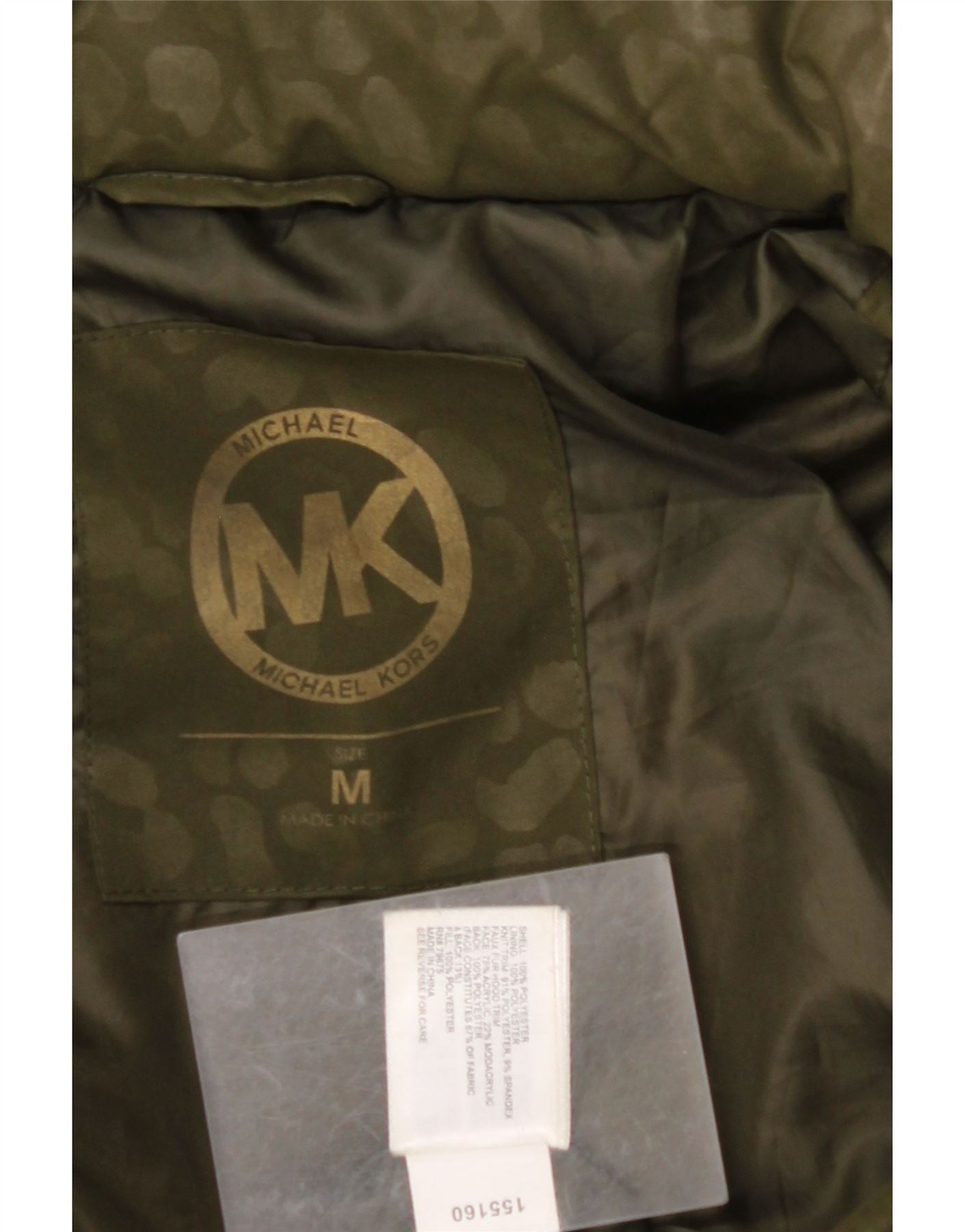 Casaco feminino acolchoado com capuz MICHAEL KORS Reino Unido 14 médio cáqui estampa animal