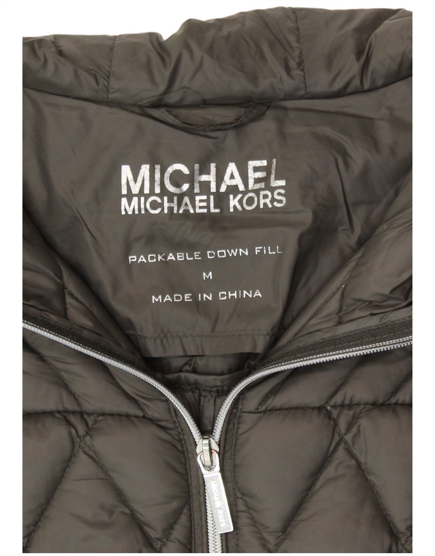 Jaqueta feminina acolchoada com capuz MICHAEL KORS Reino Unido 14 nylon cinza médio