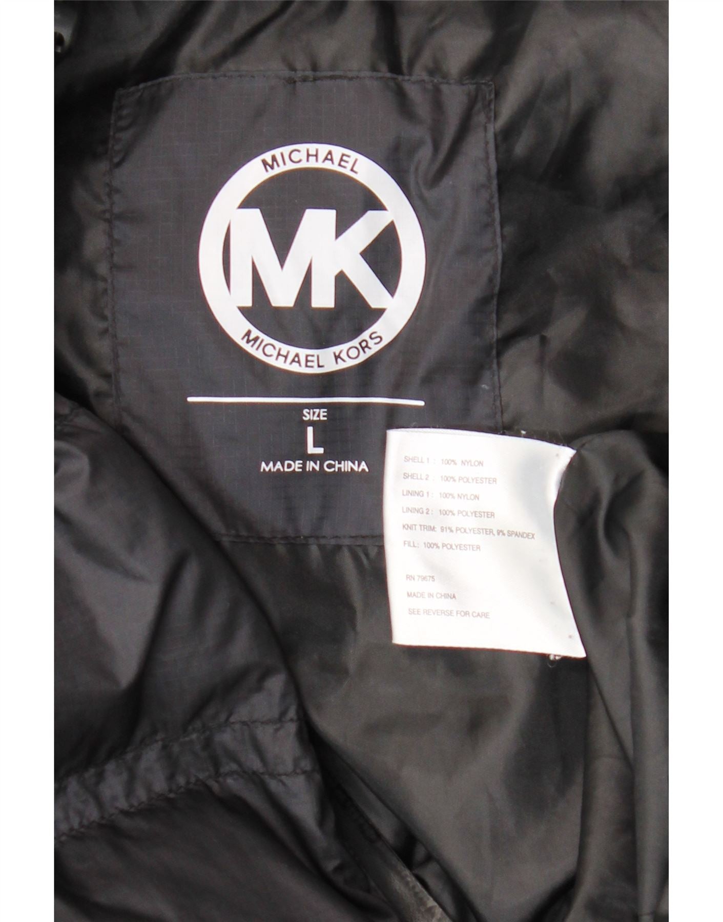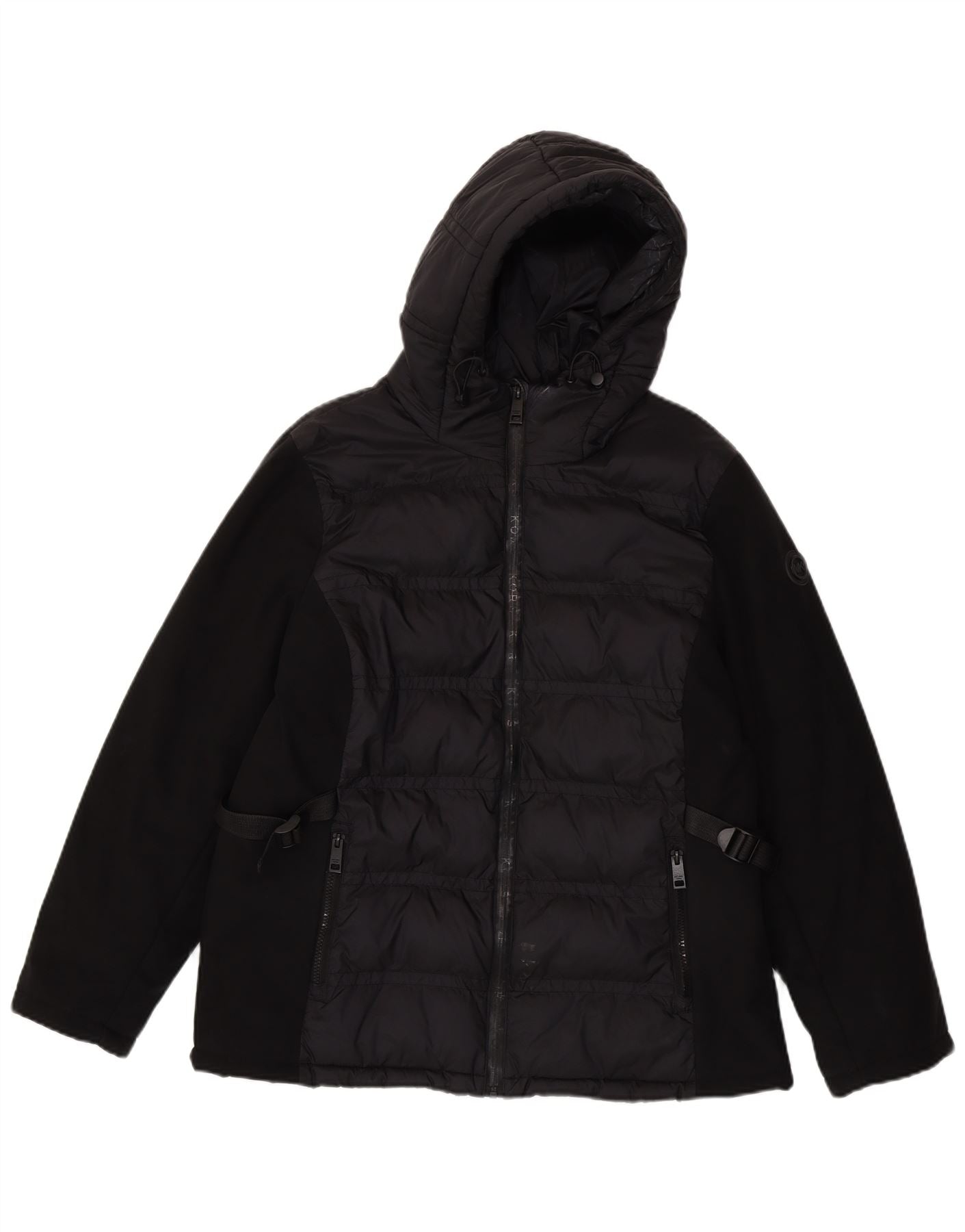 MICHAEL KORS Womens Hooded Padded Jacket UK 16 Large Black Colourblock