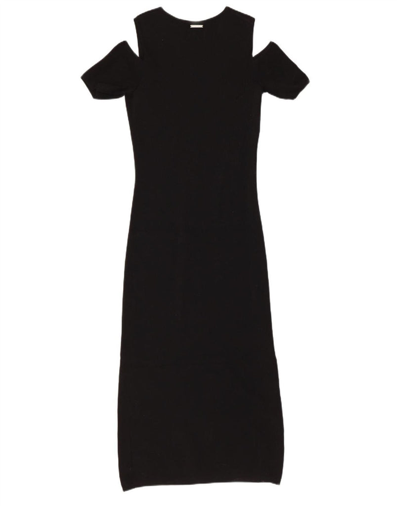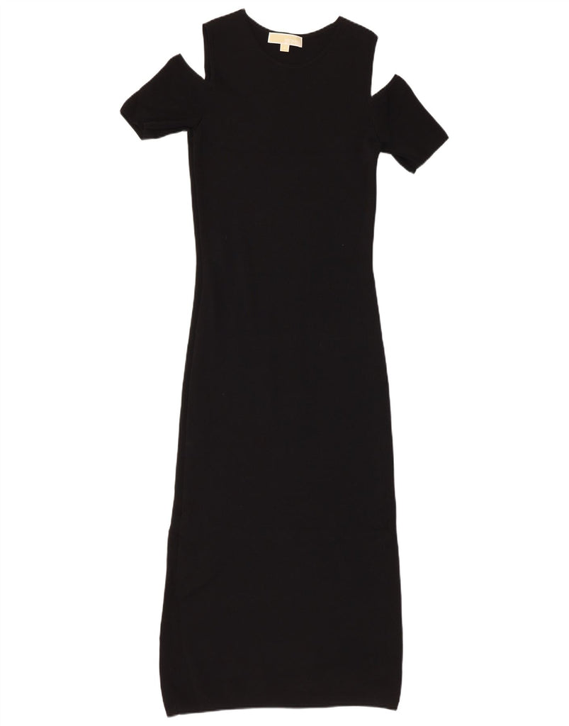 Vestido maxi feminino MICHAEL KORS com ombro de fora UK 12 médio preto viscose