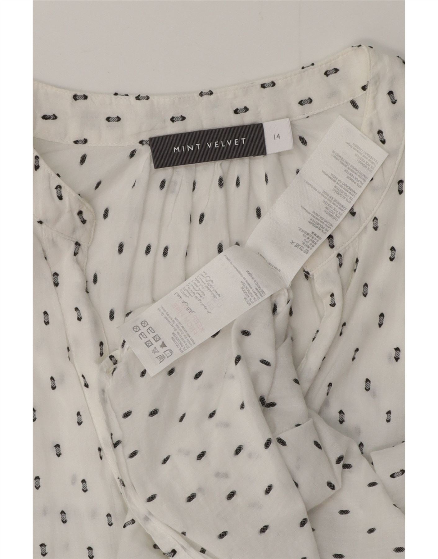 Blusa feminina MINT VELVET com camisa gráfica Reino Unido 14 grande algodão floral branco