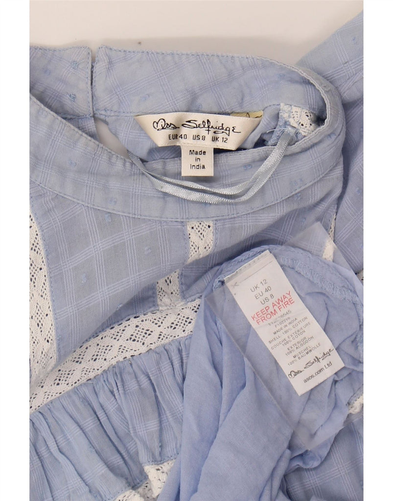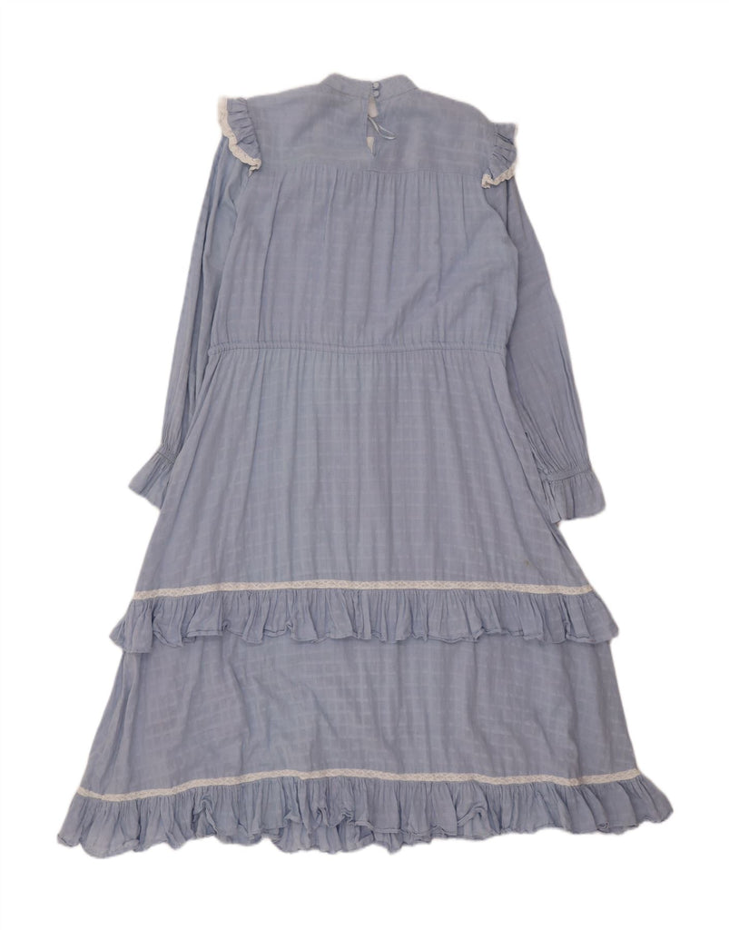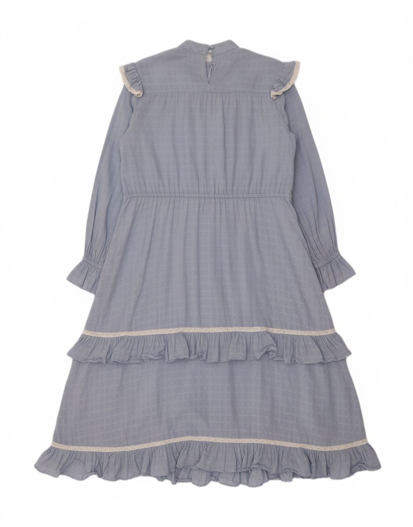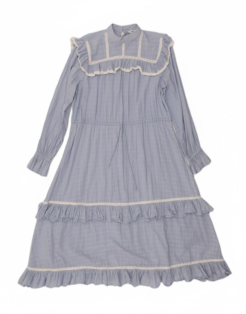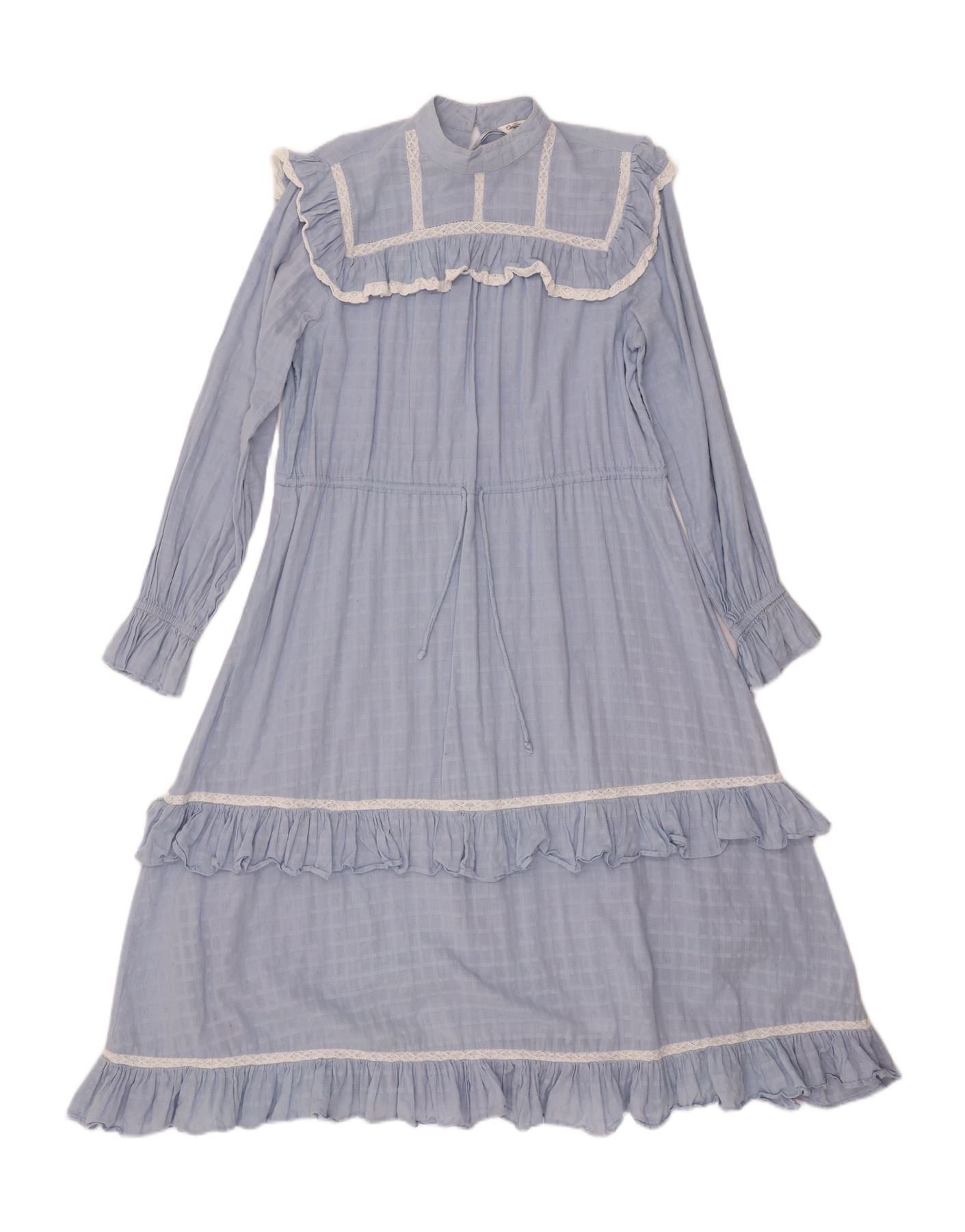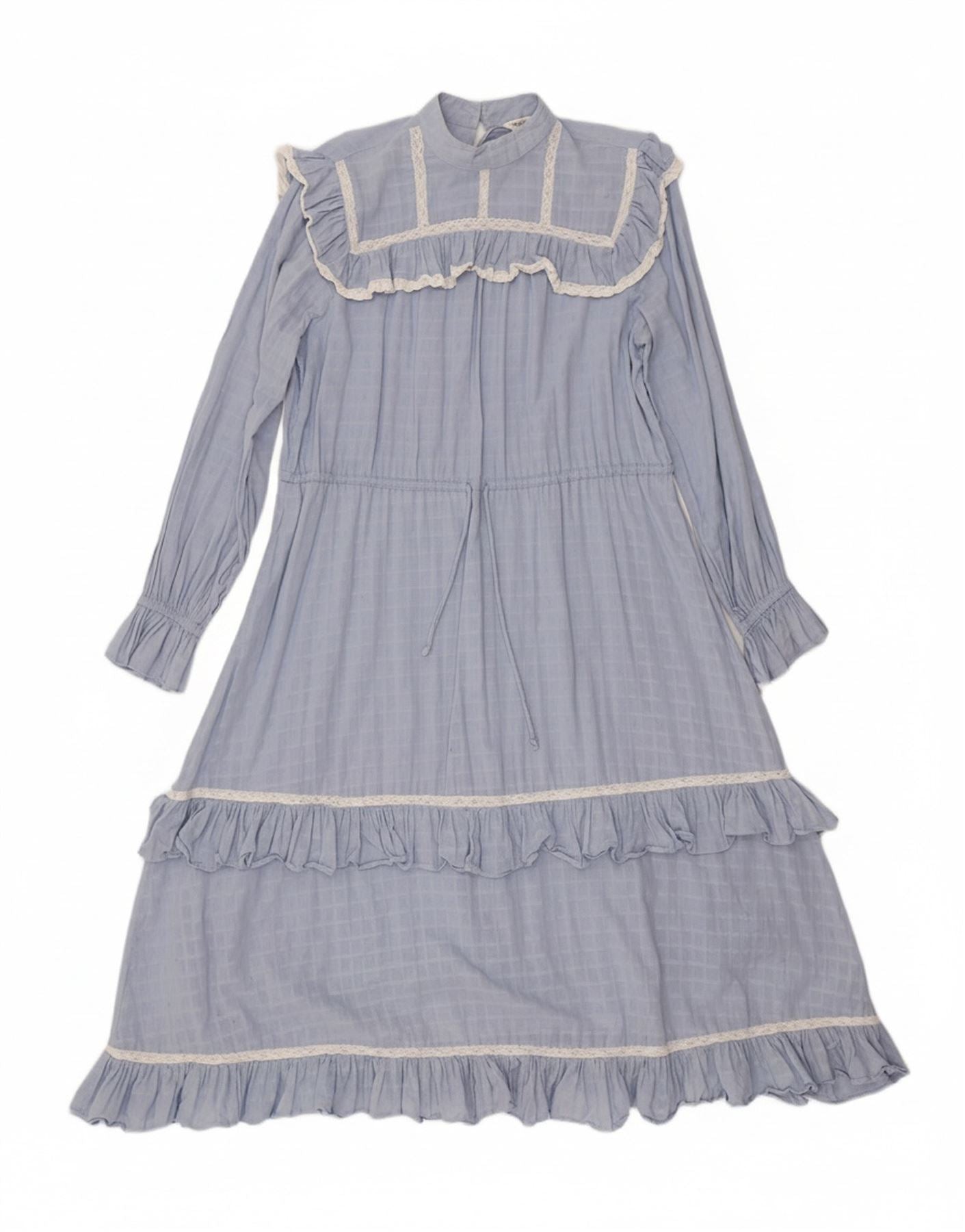 MISS SELFRIDGE Vestido maxi feminino de manga comprida Reino Unido 12 algodão azul médio