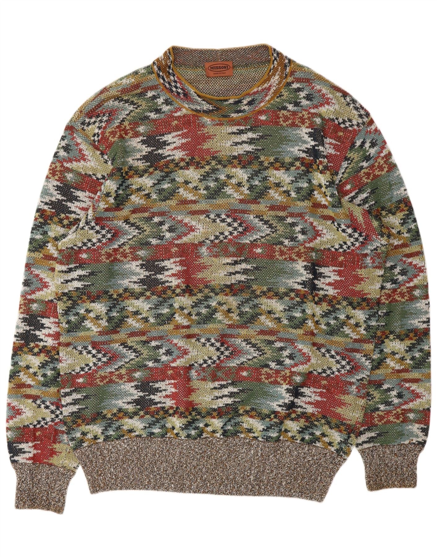 Suéter masculino MISSONI com gola redonda IT 54 XL multicolorido geométrico