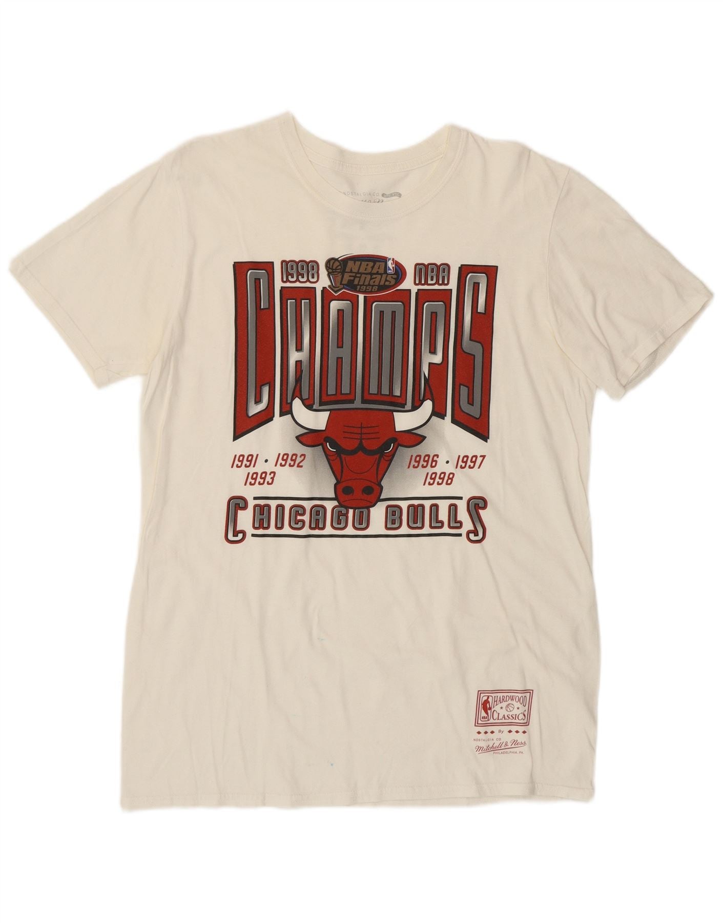 Camiseta masculina MITCHELL & NESS Chicago Bulls gráfica top médio off white