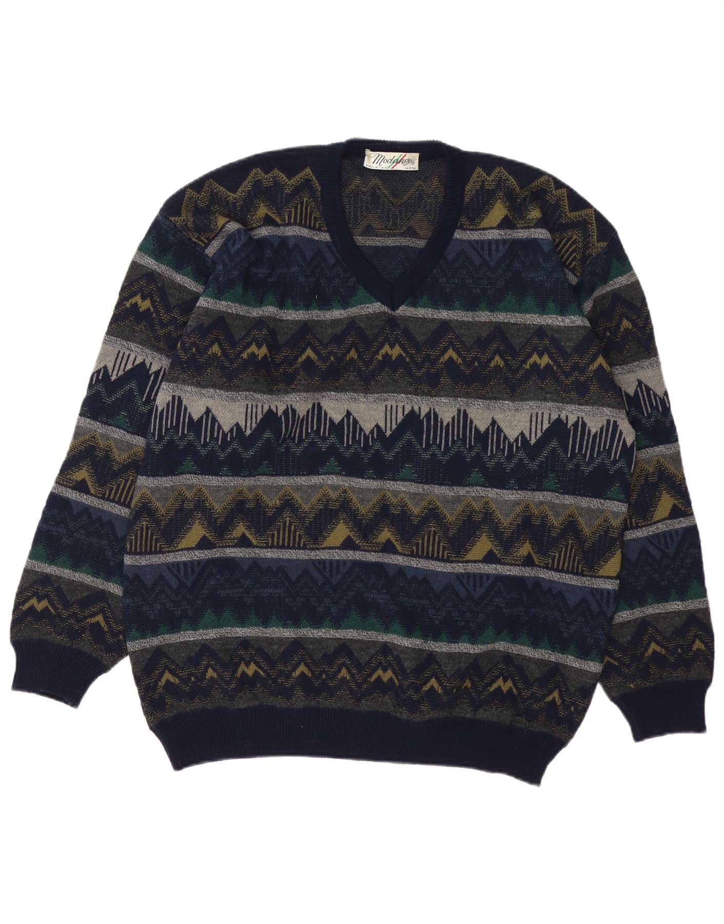 Suéter masculino MODANGO com decote em V grande acrílico geométrico azul marinho