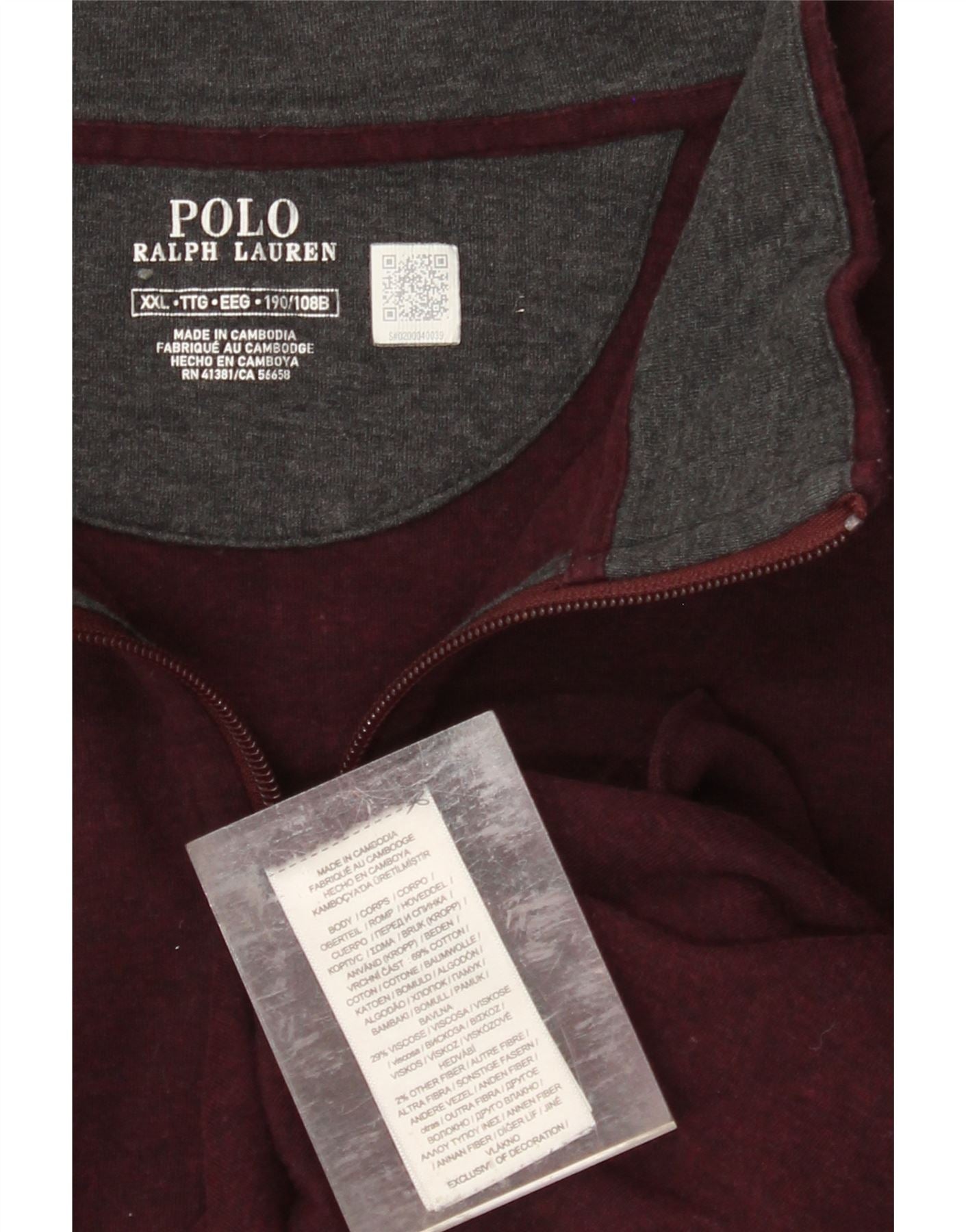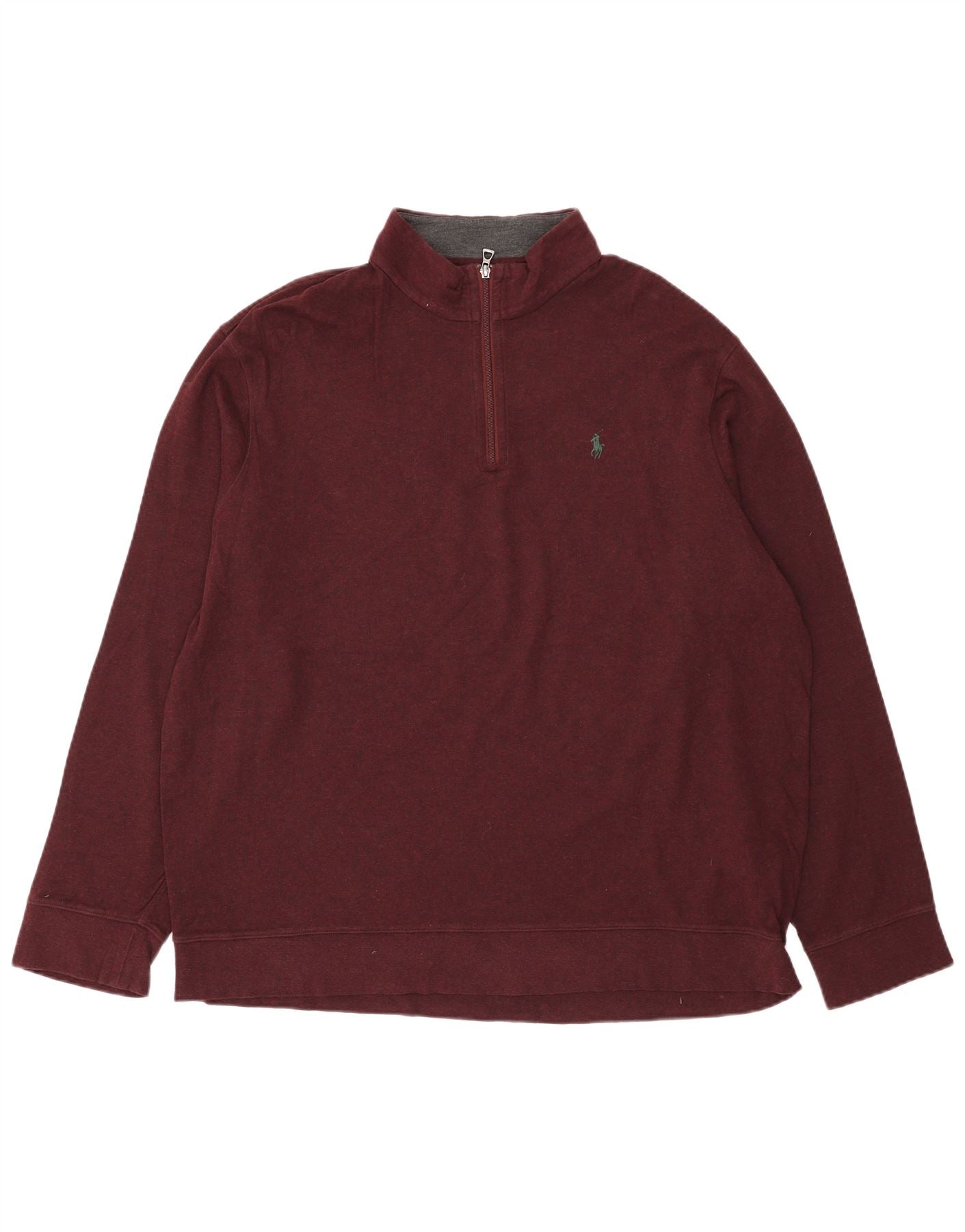 Moletom masculino RALPH LAUREN com zíper e gola 2XL algodão borgonha