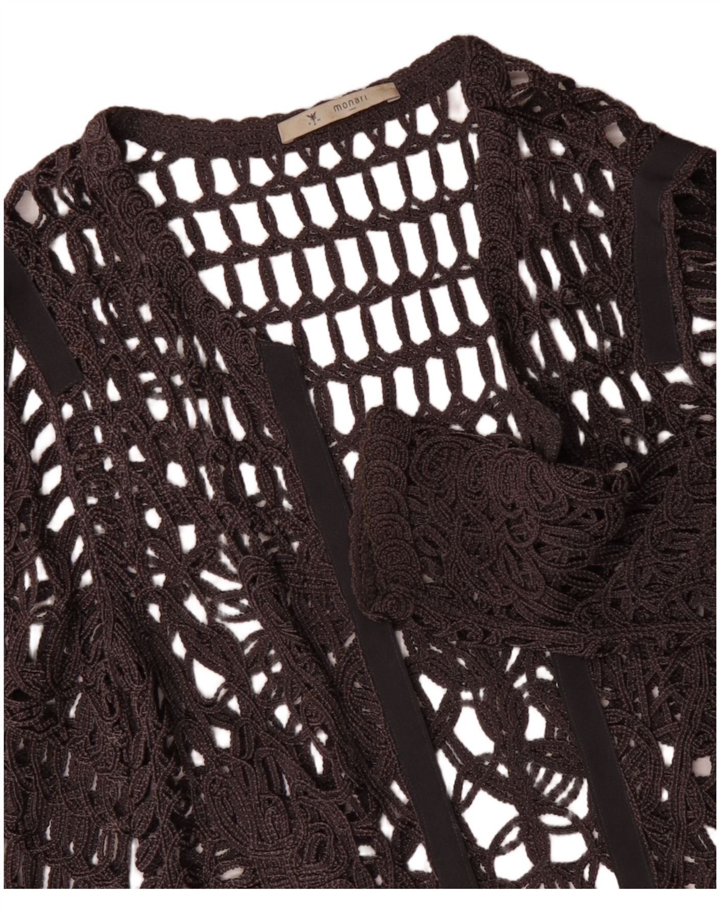 Top feminino de crochê transparente de manga comprida MONARI Reino Unido 14 grande cinza