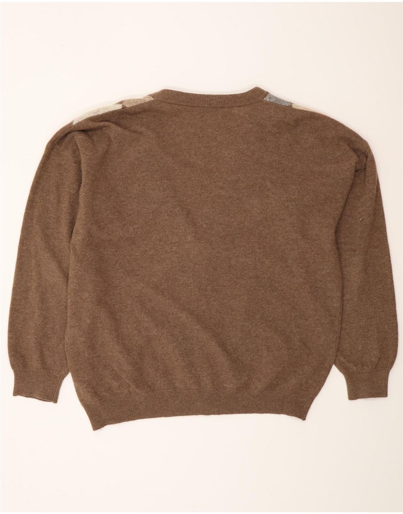Suéter cardigã masculino MONELLO IT 52 grande marrom argyle/lã diamante
