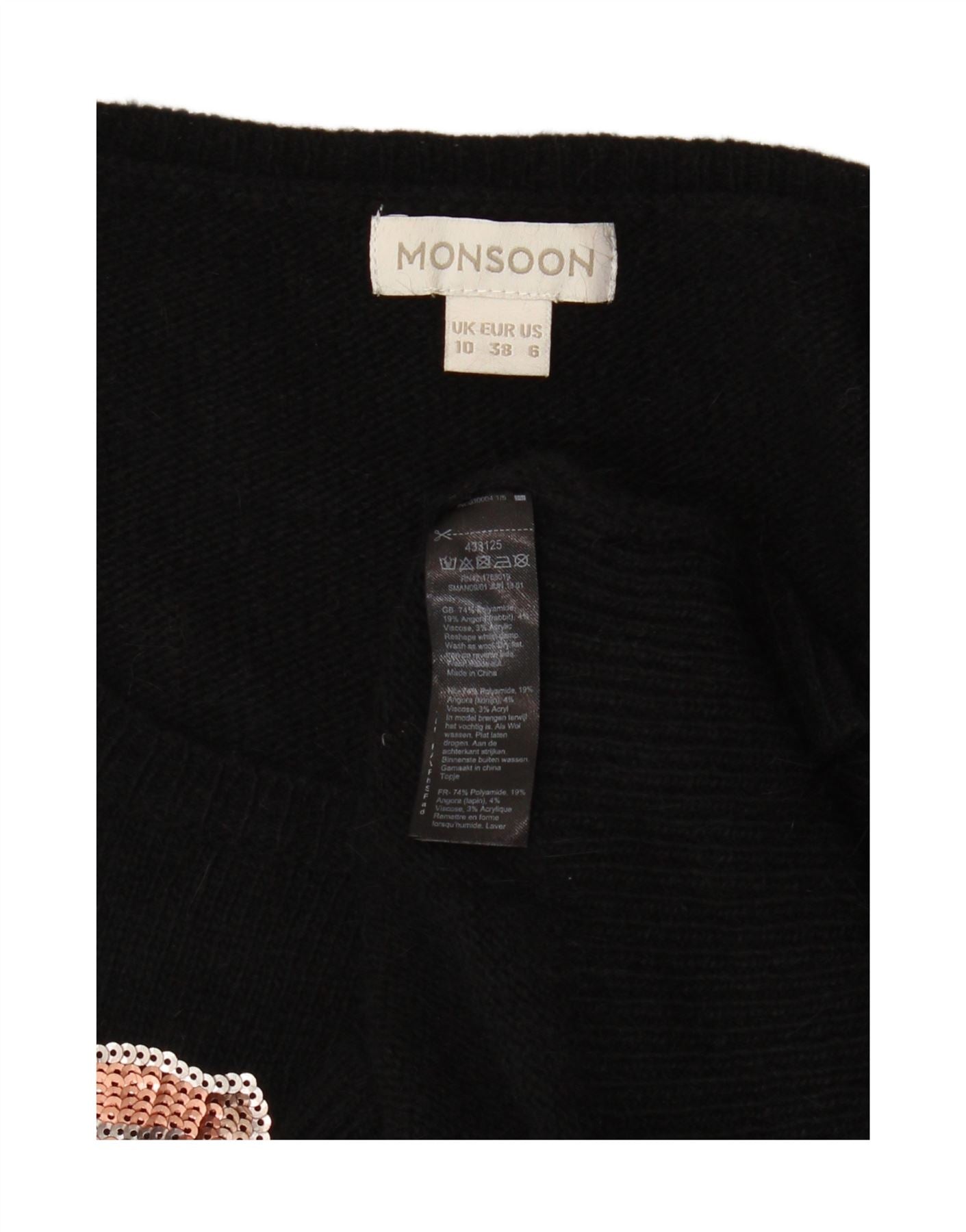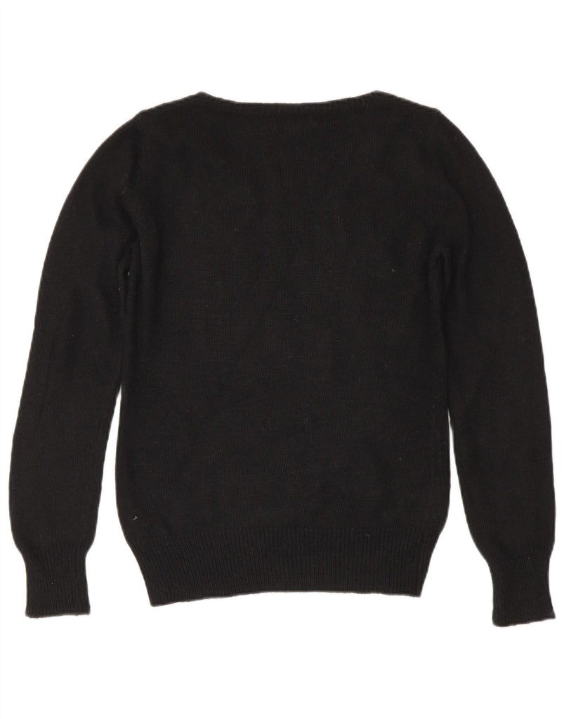 MONSOON Womens Boat Neck Jumper Sweater UK 10 Small Black Floral Polyamide